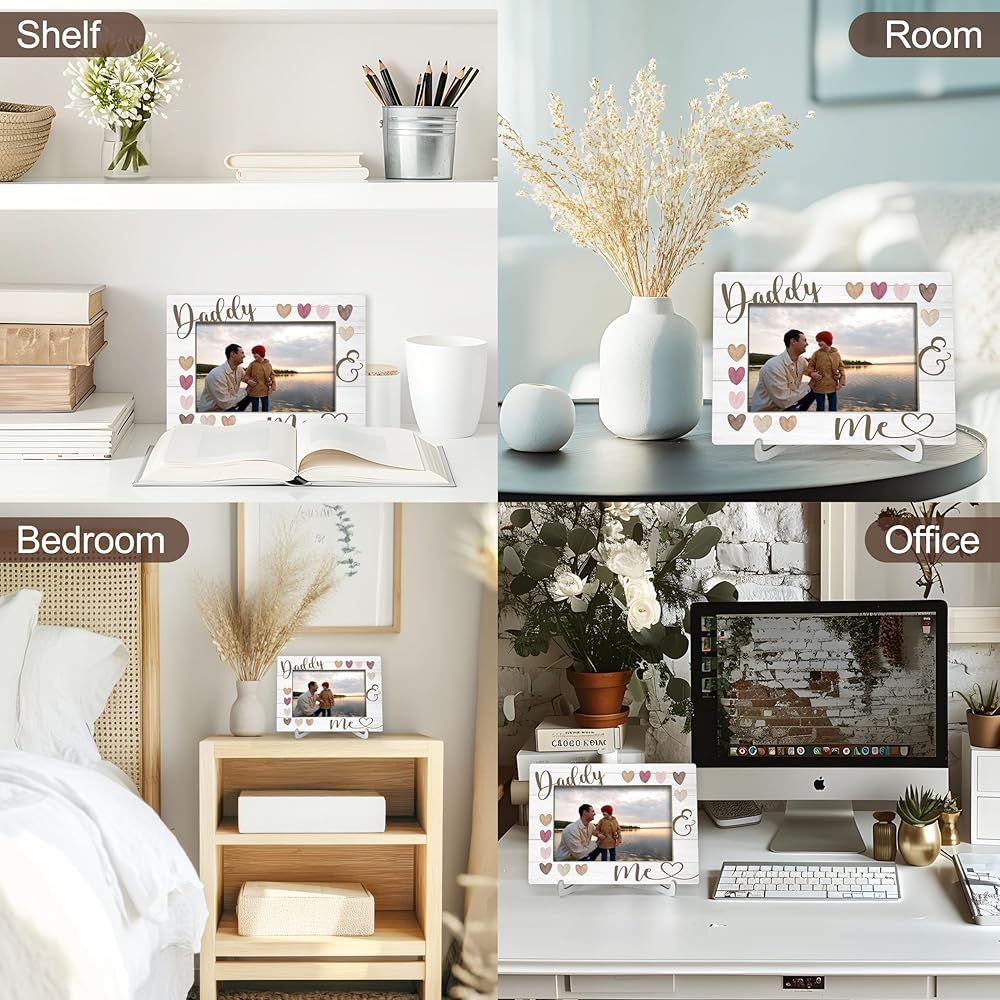 سهل الوضع: إطار الصورة هذا مناسب لأي مناسبة تقريبًا، ويأتي مع حامل خشبي، يمكنك وضع إطار الصورة الجميل على المكتب، ورف الكتب، وعتبة النافذة، وغرفة المعيشة، ويتوافق مع أي نمط زخرفي.