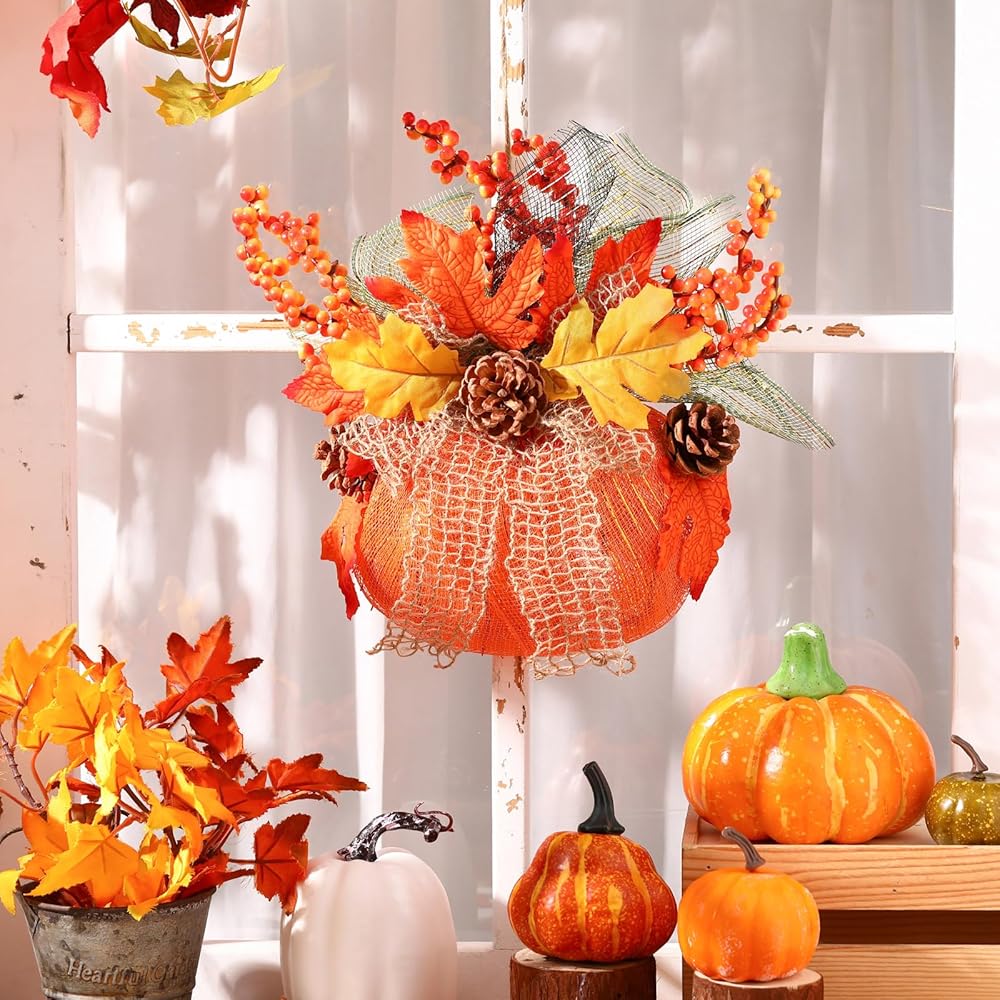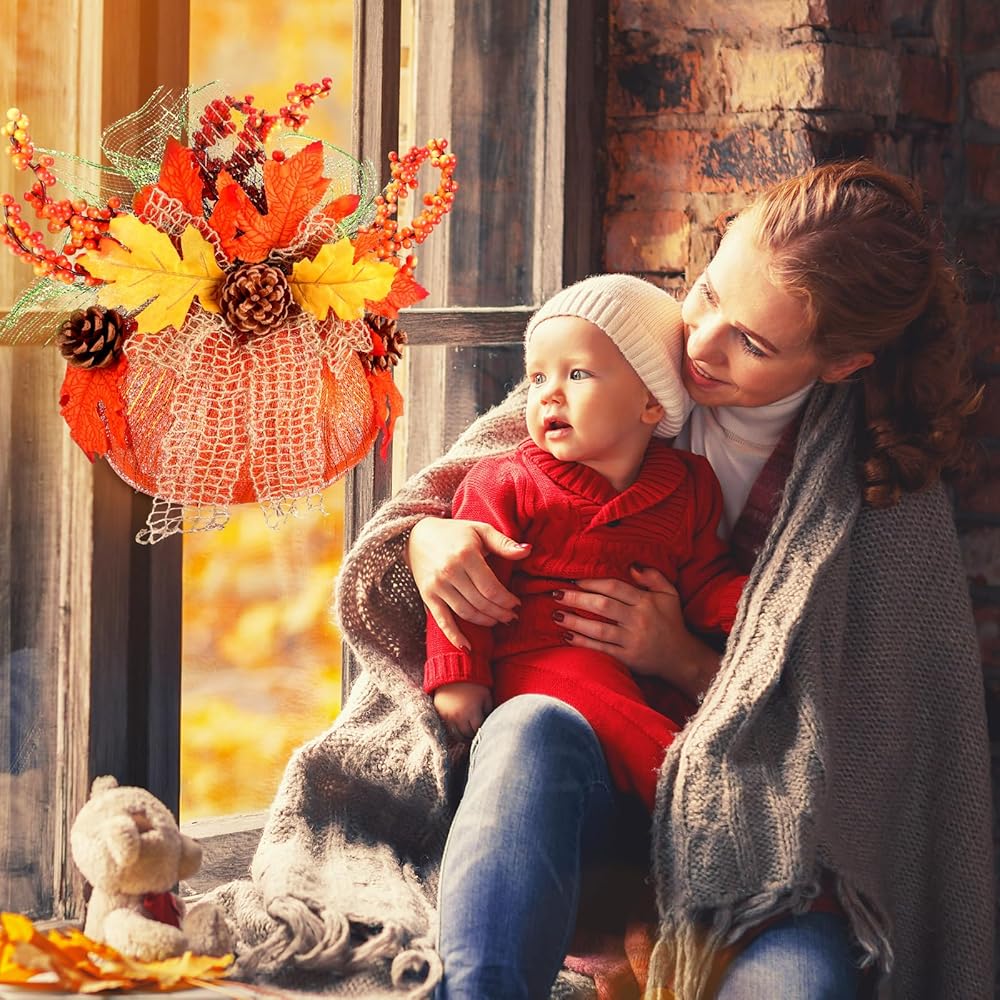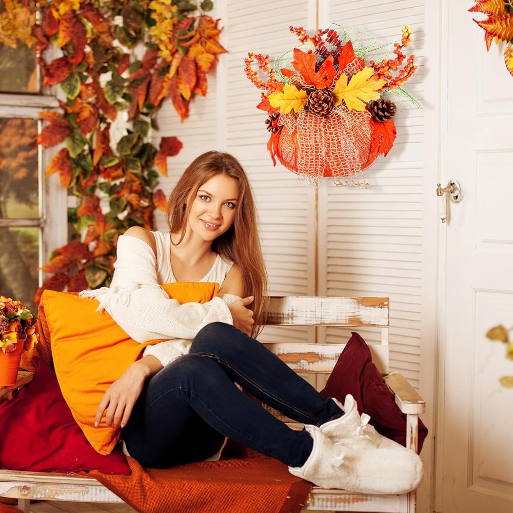 • Elegant Design and Craftsmanship: this Thanksgiving decorations feature fall theme decorated with linen and artificial maple leaves, adorned with orange branches and pine cones, exuding the scent of autumn harvest, providing a captivating welcome to your guests