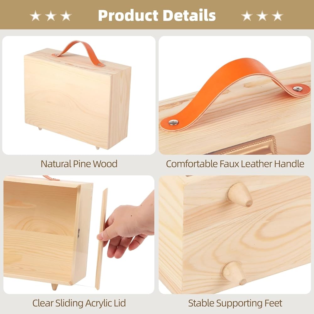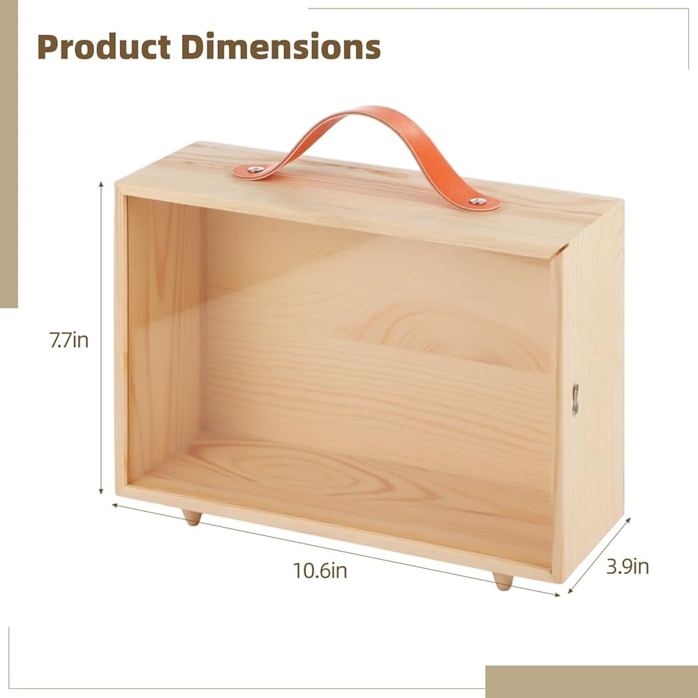 مقبض مريح لسهولة النقل: مزود بمقبض من الجلد الصناعي وإكسسوارات لولبية، يتطلب هذا الصندوق الخشبي تركيبًا ذاتيًا بسيطًا للمقبض، مما يسمح بسهولة الحمل وتعزيز تنوع العرض سواء في المنزل أو أثناء التنقل.