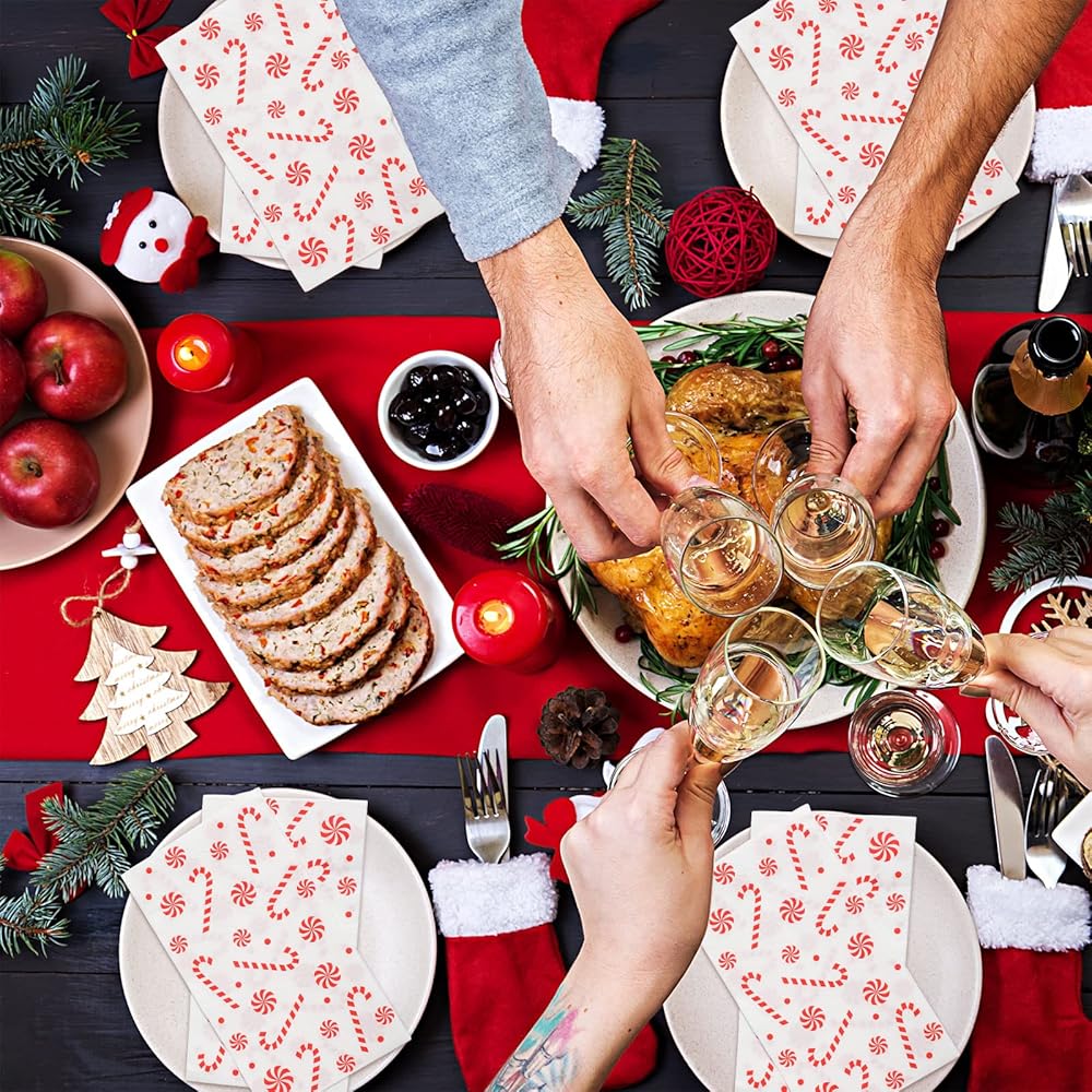 100 قطعة من مناديل الكريسماس مناديل الكوكتيل الورقية للاستعمال مرة واحدة للضيوف منديل عيد الميلاد كاندي موضوع ورق زخرفي مناشف الضيوف لقضاء عطلة عيد الميلاد وحفلات العشاء، 7.87 × 4.3 بوصة