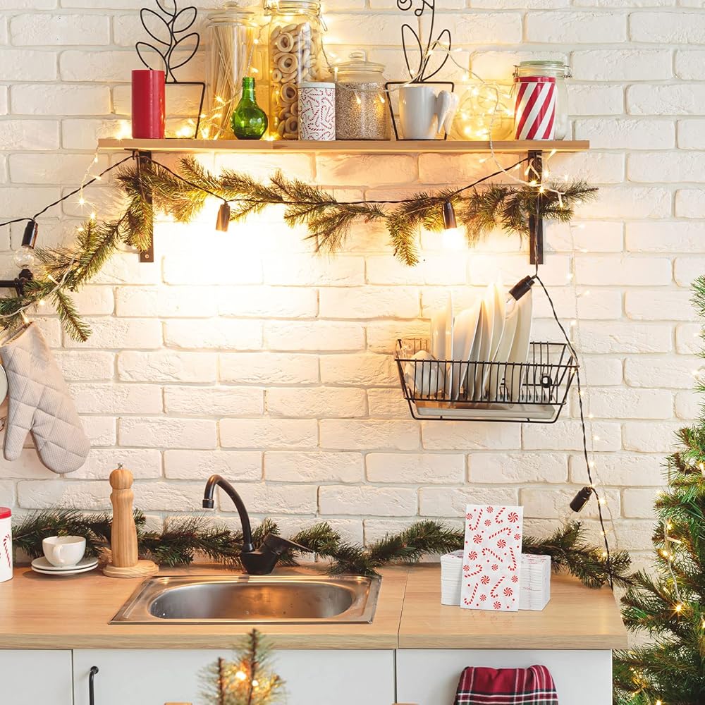 تصميم موضوع الحلوى: مناشف الضيوف الورقية المبهجة لعيد الميلاد تتميز بالحلوى الحمراء وقصب الحلوى على خلفية بيضاء؛ إضافة مبهجة إلى حمام ضيوفك أو بمثابة منديل جيد للمضيفة، مما سيضيف مظهرًا احتفاليًا إلى طاولتك أو تجمعك