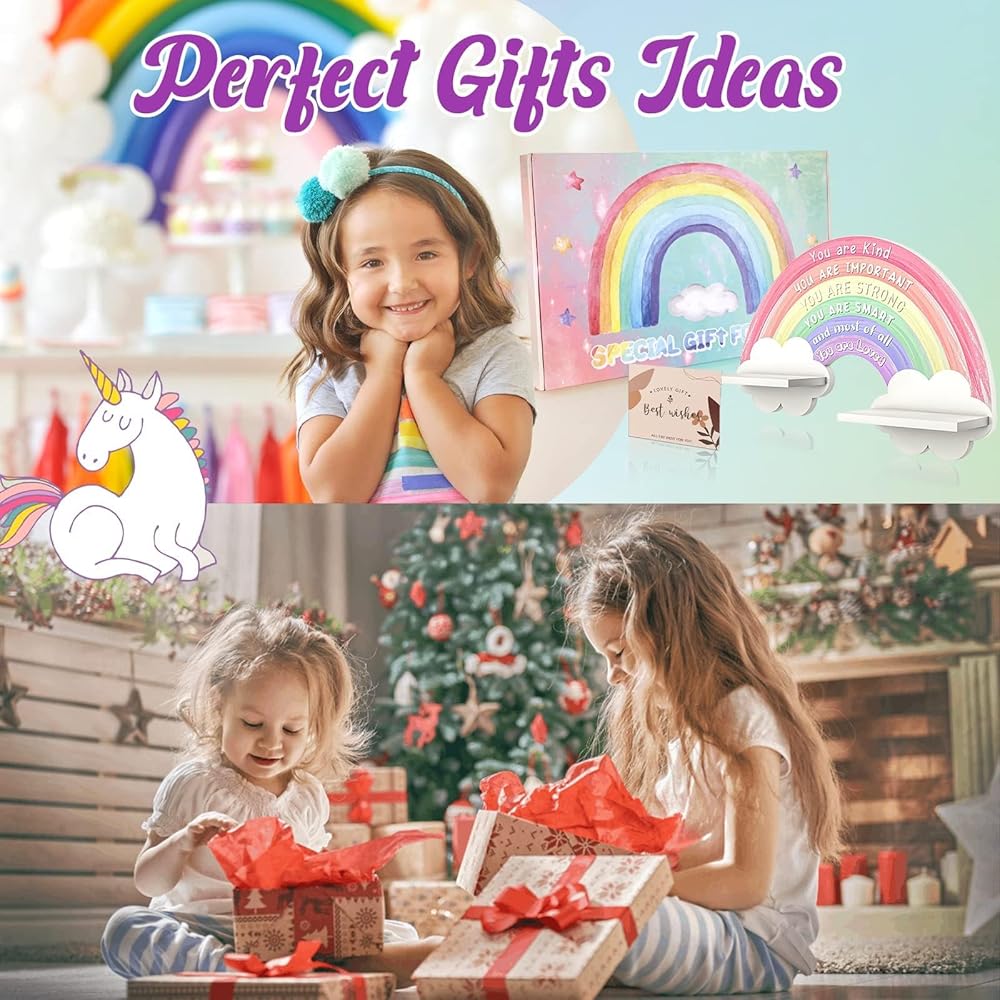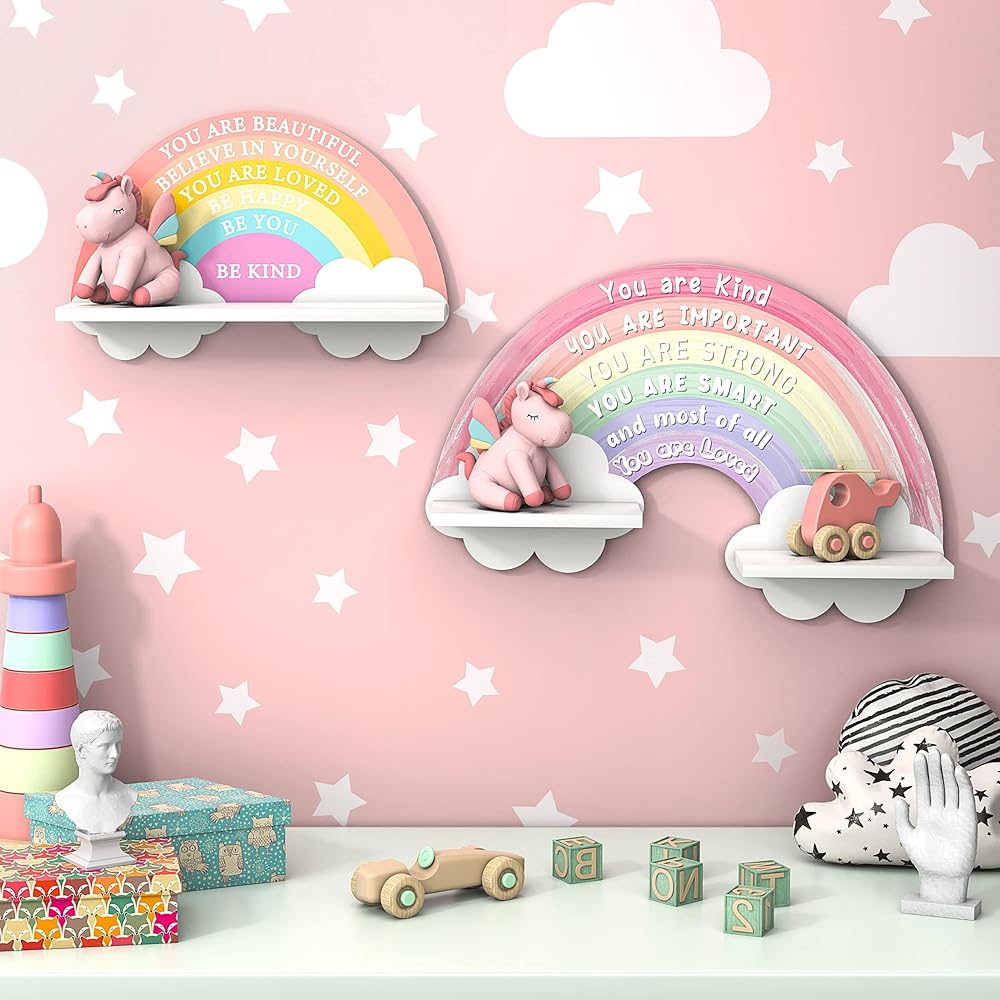 أرفف حائط خشبية بألوان قوس قزح من Garybank لغرف الأطفال - ديكور غرفة فتيات قوس قزح، فن جداري تحفيزي، ديكور غرفة نوم وردي قوس قزح يونيكورن للفتيات والأطفال، ديكور جدار غرفة قوس قزح لغرفة اللعب في الفصول الدراسية
