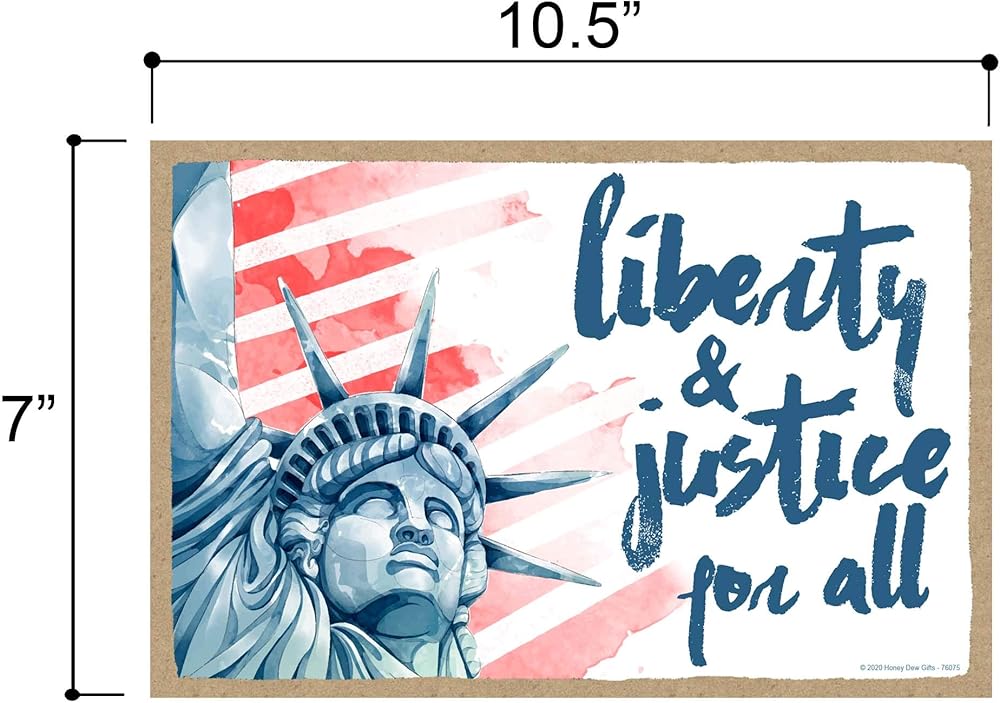 Honey Dew Gifts patriotic wooden sign Liberty and Justice for All is the perfect home and office decorative for the Independence Day.