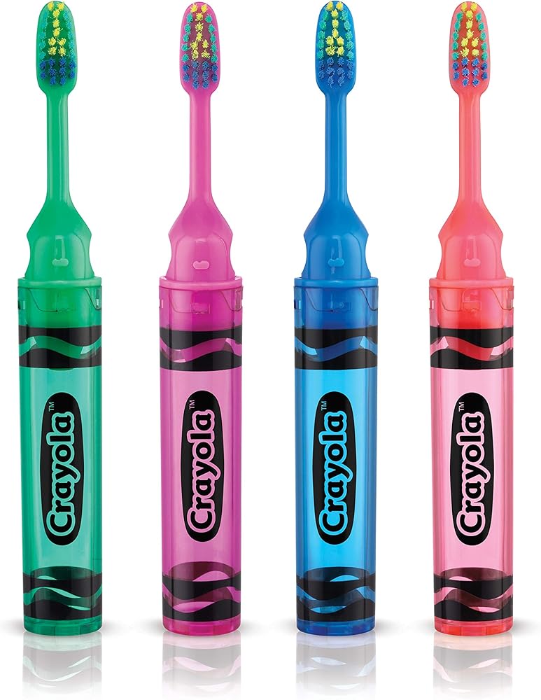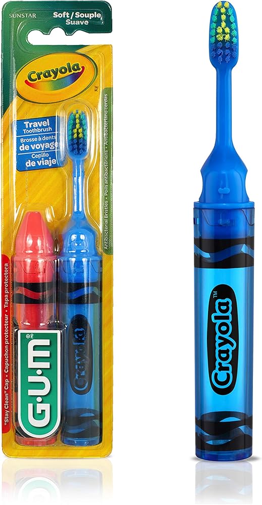 4 YEARS AND UP: The Crayola Travel Toothbrush is an ideal solution for youngsters on the go. Compact head fits comfortably in smaller mouths and ultra soft bristles are gentle on gums.