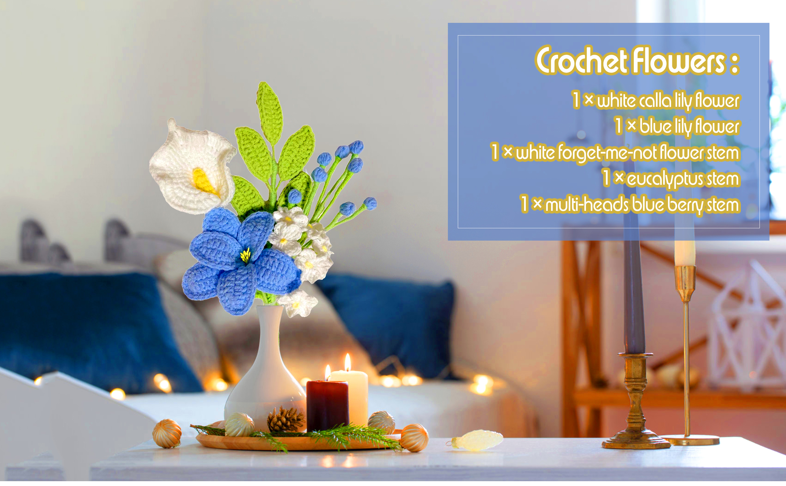 تحتوي العبوة على: تحتوي العبوة على 5 قطع من سيقان الزهور المحبوكة، بما في ذلك زنبق الكالا الأبيض والزنبق الأزرق الفاتح وزهور لا تنسى بيضاء وسيقان الأوكالبتوس، مليئة بأجواء الربيع، مثالية لتزيين الربيع