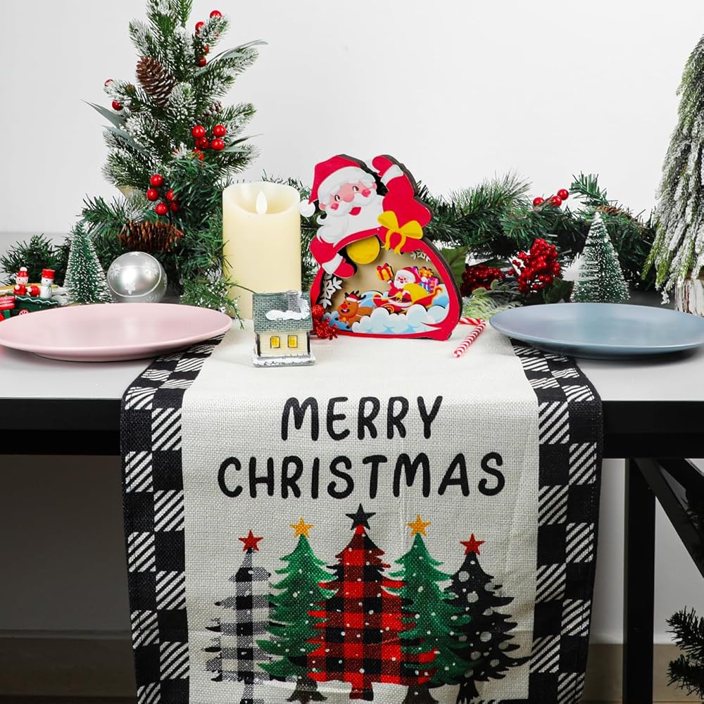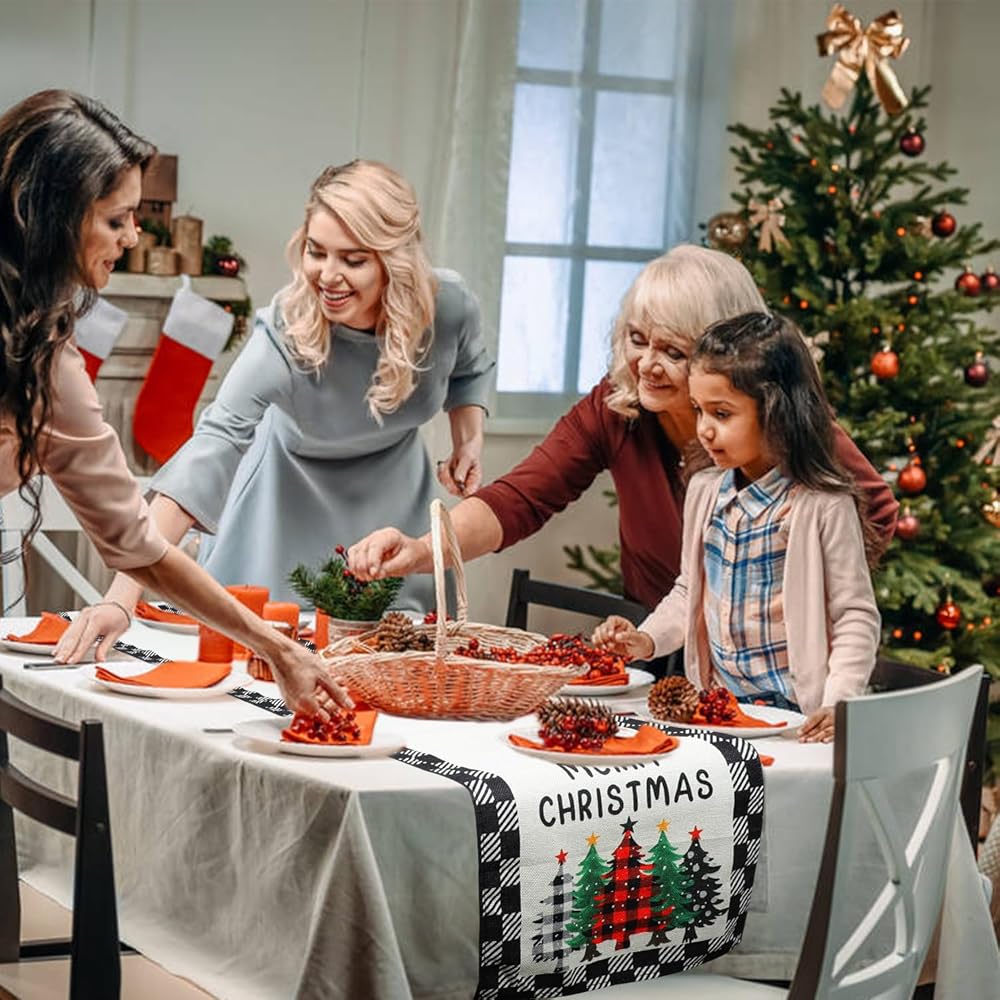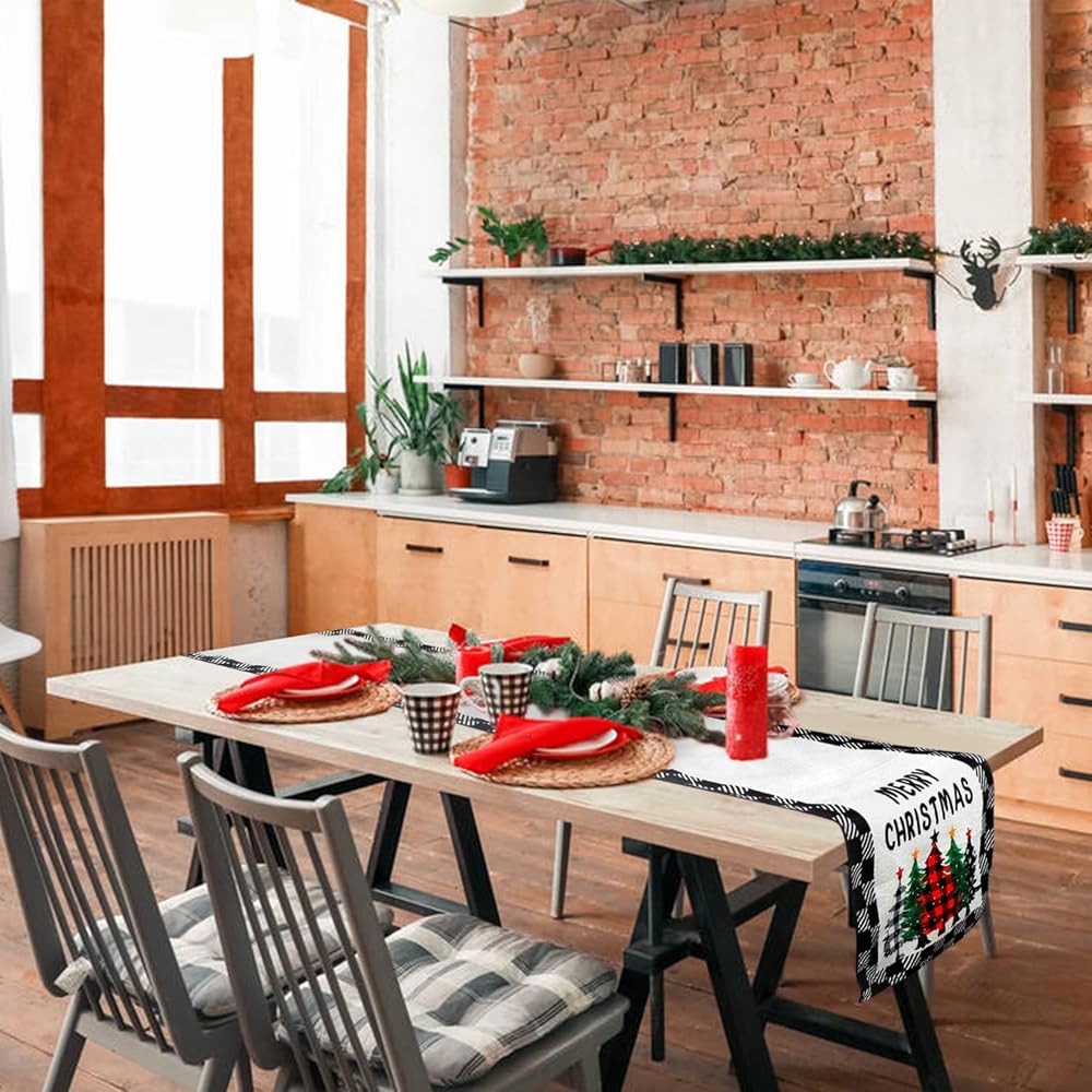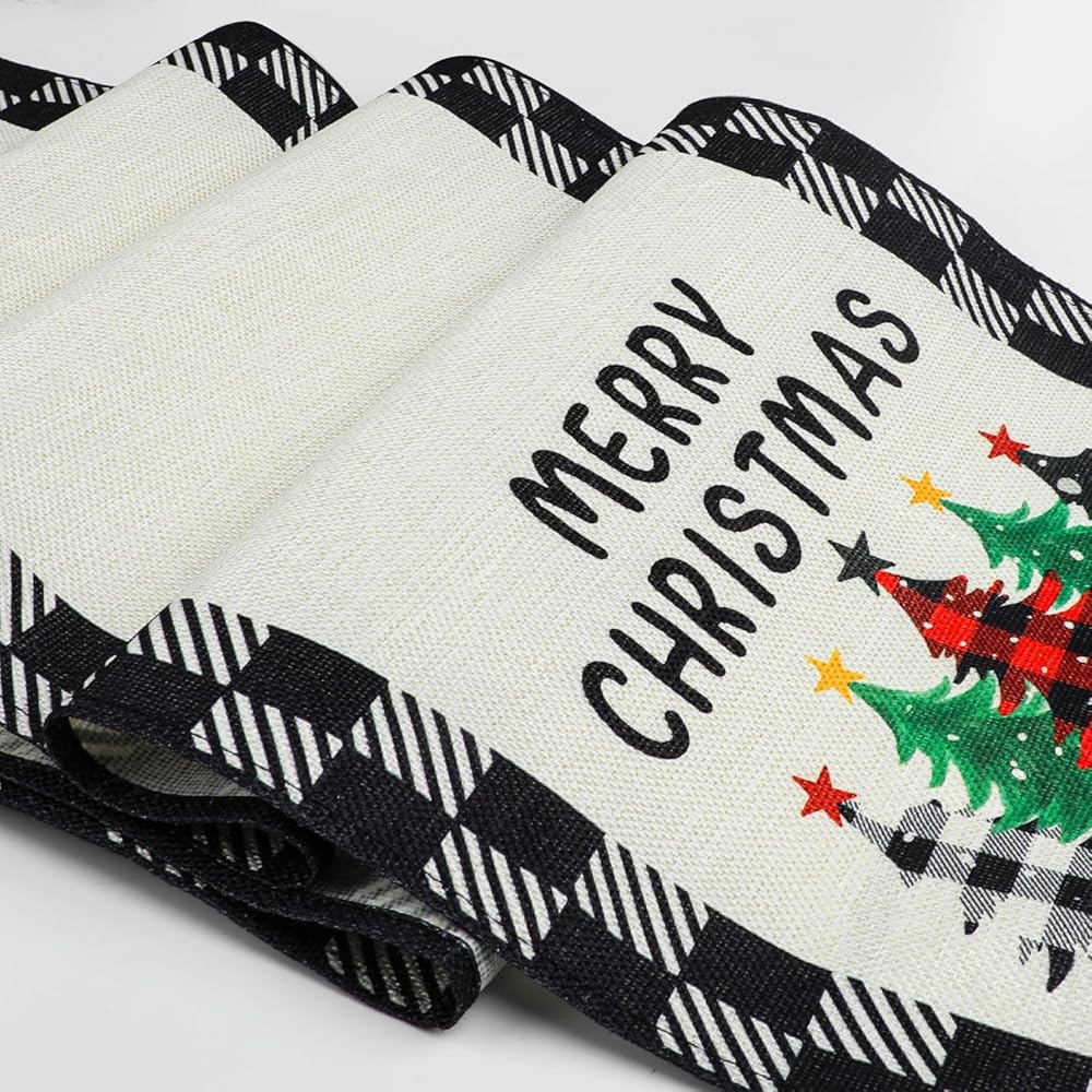 DIYASY عيد الميلاد منقوشة الجدول عداء، أبيض وأسود الجاموس الاختيار الجدول العداءين شجرة عيد الميلاد موضوع لبيت المزرعة طاولة القهوة قصيرة عطلة المطبخ الديكور 72 بوصة طويلة