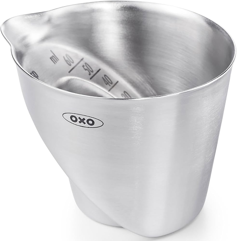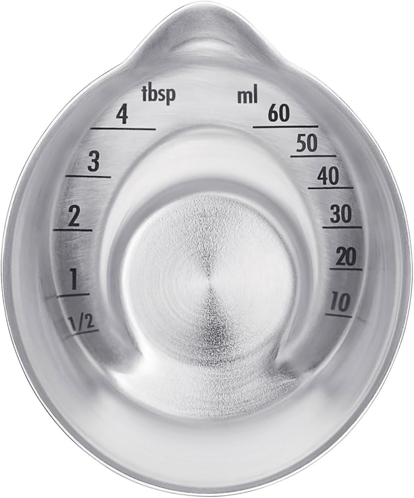 With a patented angled surface, the Angled Measuring Jigger allows you to see measurement markings while looking straight down into it, so you don't have to hold it up to eye level or bend down to read markings on the side. Perfect for measuring alcohol and spirit shots. Includes markings for measuring in both fluid ounces and tablespoons.