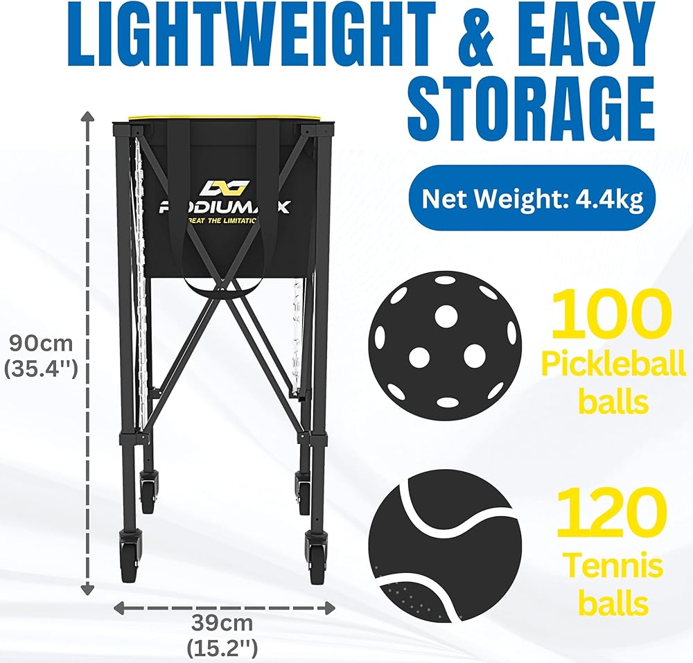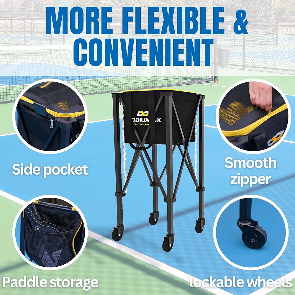 سعة كبيرة - رفيقك المثالي لممارسة كرة البيسبول والبطولات! تم تصميم هذه العربة ذات العجلات لاستيعاب ما يصل إلى 100 كرة مخلل، وهي مثالية للاعبين والمدربين والفرق التي تبحث عن تبسيط تجربة لعبهم اليومية.