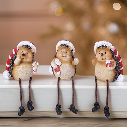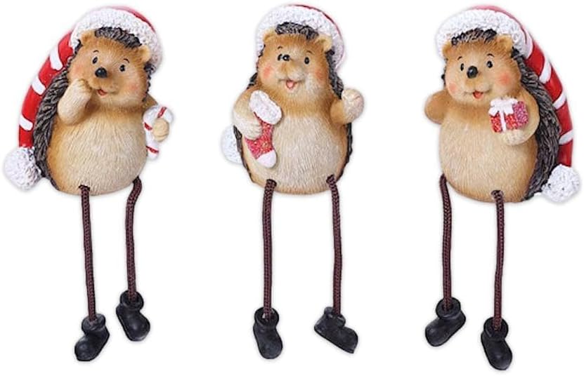 • CLASSIC CHRISTMAS DECORATION: Featuring a unique and stylish design, these hedgehog shelf sitters are ready for gifting. The figurines measures 3.5"H x 3"W and have dangling legs for a fun display on a shelf or counter in any room in your home. Not a toy; for decorative purposes only.
