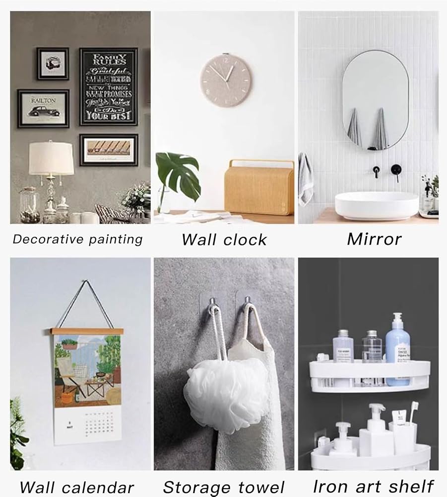 LIGHTSTAR قطعتان من الخطافات اللاصقة للجدار، شماعات الحائط بدون أظافر لإطارات الصور، خطافات مقاومة للماء والزيت للزينة ورفوف المطبخ للحمام، شفافة