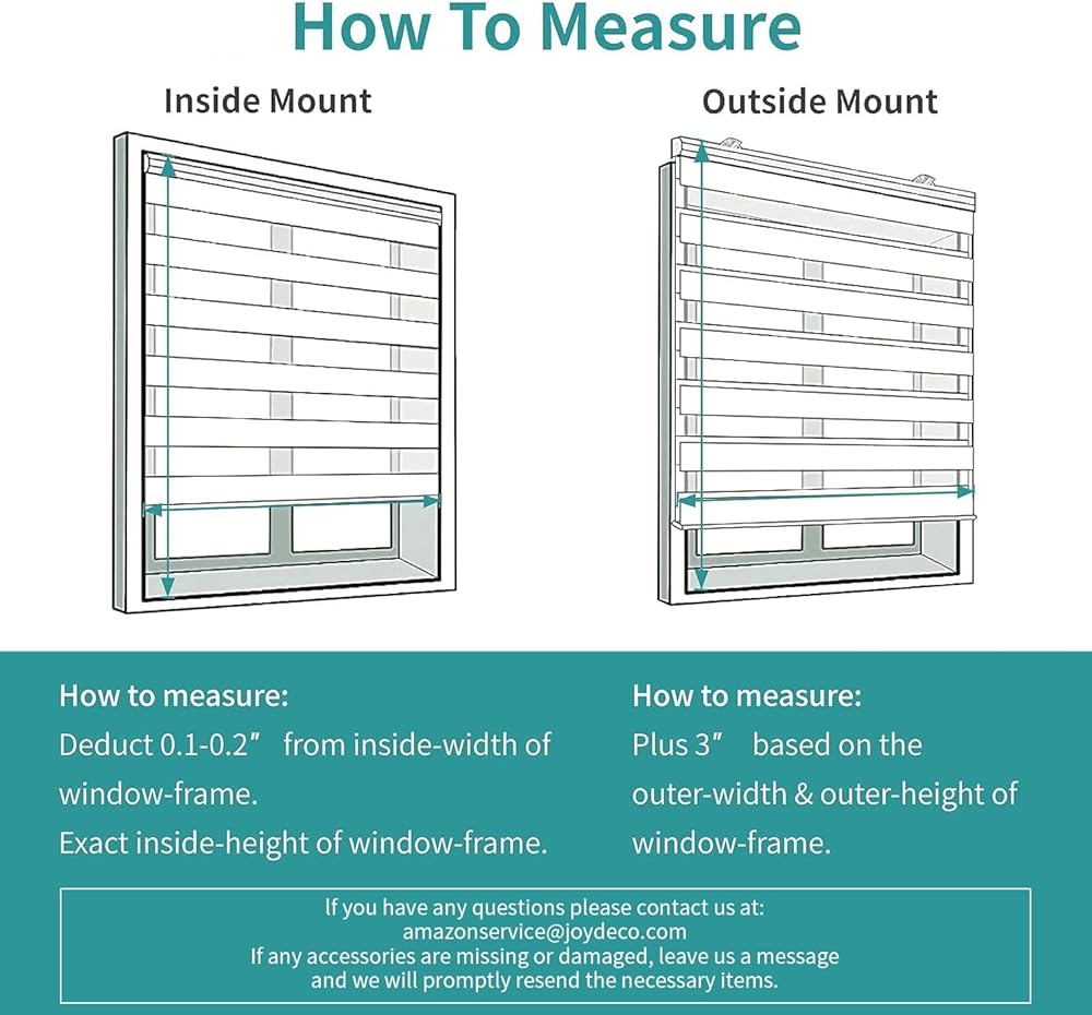 • 【كيفية اختيار الحجم المناسب؟ 】يمكن تركيب الستائر الدوارة داخل أو خارج إطار النافذة. للتركيب الداخلي: عرض الظل = عرض النافذة - 0.1 بوصة أو 0.2 بوصة؛ للتركيب الخارجي: عرض الظل = عرض النافذة + 3 بوصات. يأتي هذا المنتج مع أدوات التثبيت والتعليمات، مما يجعله سريعًا وسهل التثبيت في الداخل أو الخارج، كما أنه سهل الإزالة أيضًا. لاحظ أن عرض القماش لهذا المنتج سيكون أقصر بمقدار بوصة واحدة تقريبًا من القضبان العلوية والسفلية.