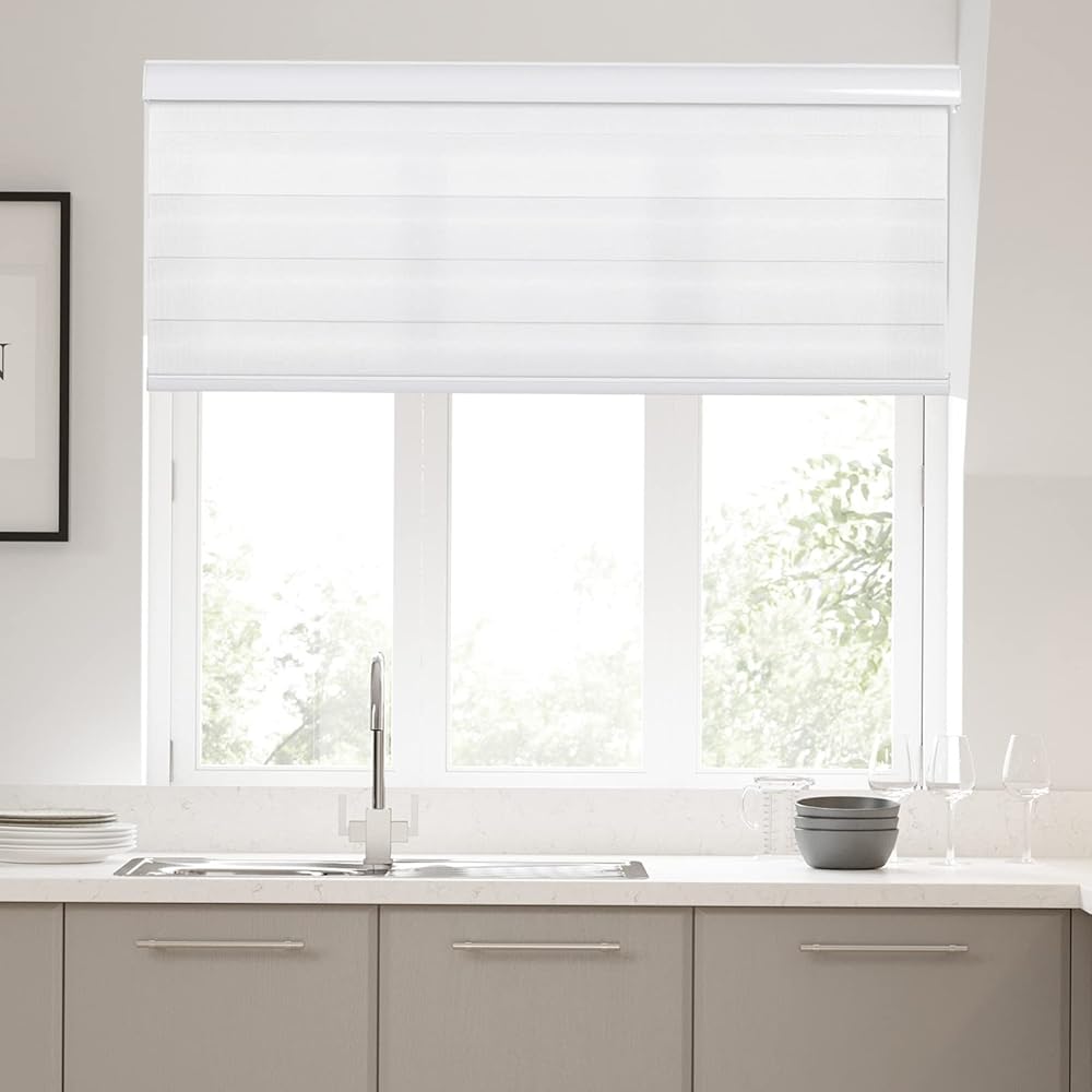 Joydeco 58 بوصة واسعة بيضاء الستائر حمار وحشي شير للنوافذ، الخصوصية تصفية ضوء حبالي طبقة مزدوجة ظلال الأسطوانة لغرفة النوم مكتب المنزل