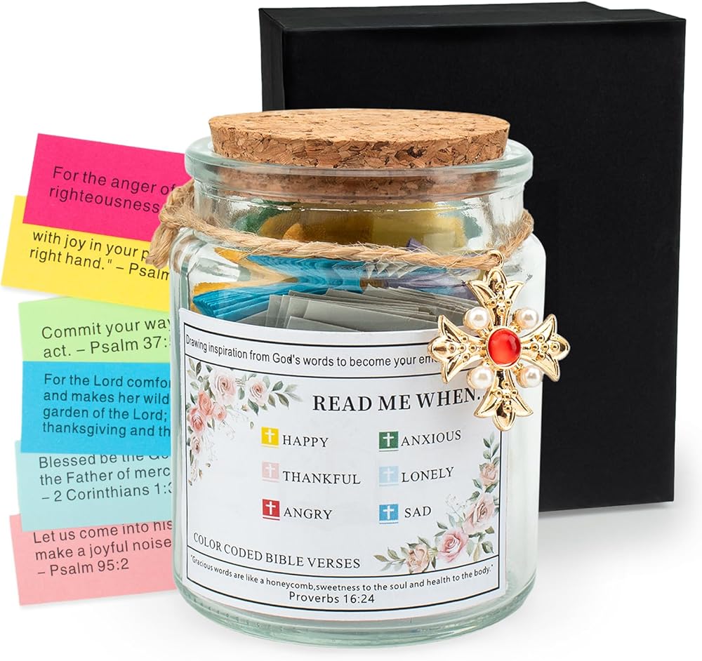 جرة آية الكتاب المقدس من يلسكي، اقرأني عندما جرة آيات الكتاب المقدس، جرة الصلاة المرجعية لآية الكتاب المقدس، 90 بطاقة كتابية، علبة الكتاب المقدس، هدايا تذكارية مسيحية للنساء، هدايا تذكارية مسيحية للتخرج مع صندوق