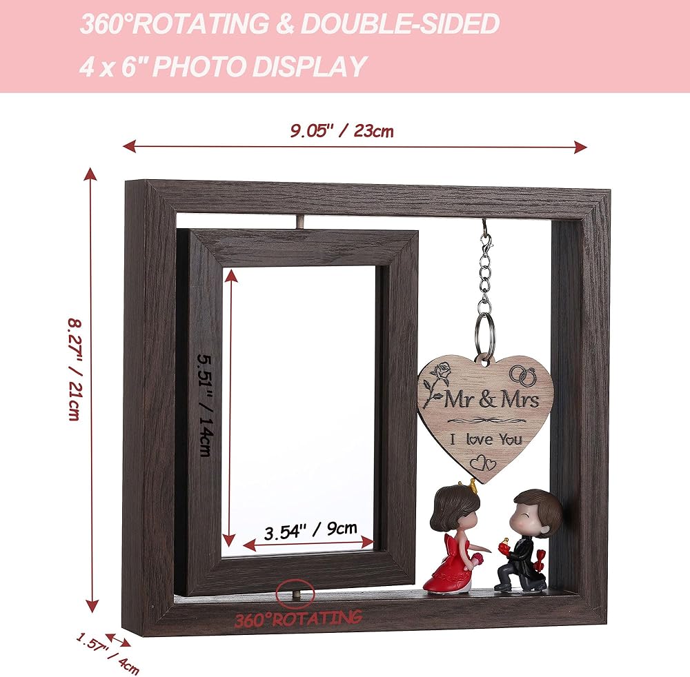 • 【إطار صور خشبي قوي】تتكون مجموعة الهدايا المقدمة لها/لها من إطار صور داخلي ممتاز مقاس 9.0 × 8.0 بوصة والذي يسمح لك بإدخال قطعتين من الصور الرأسية مقاس 4 × 6 بوصة، ودوران حر بزاوية 360 درجة. مصمم بغطاء زجاجي شفاف واقٍ عالي الدقة، يحمي صورتك الثمينة بشكل أفضل من البهتان والغبار والماء وما إلى ذلك.