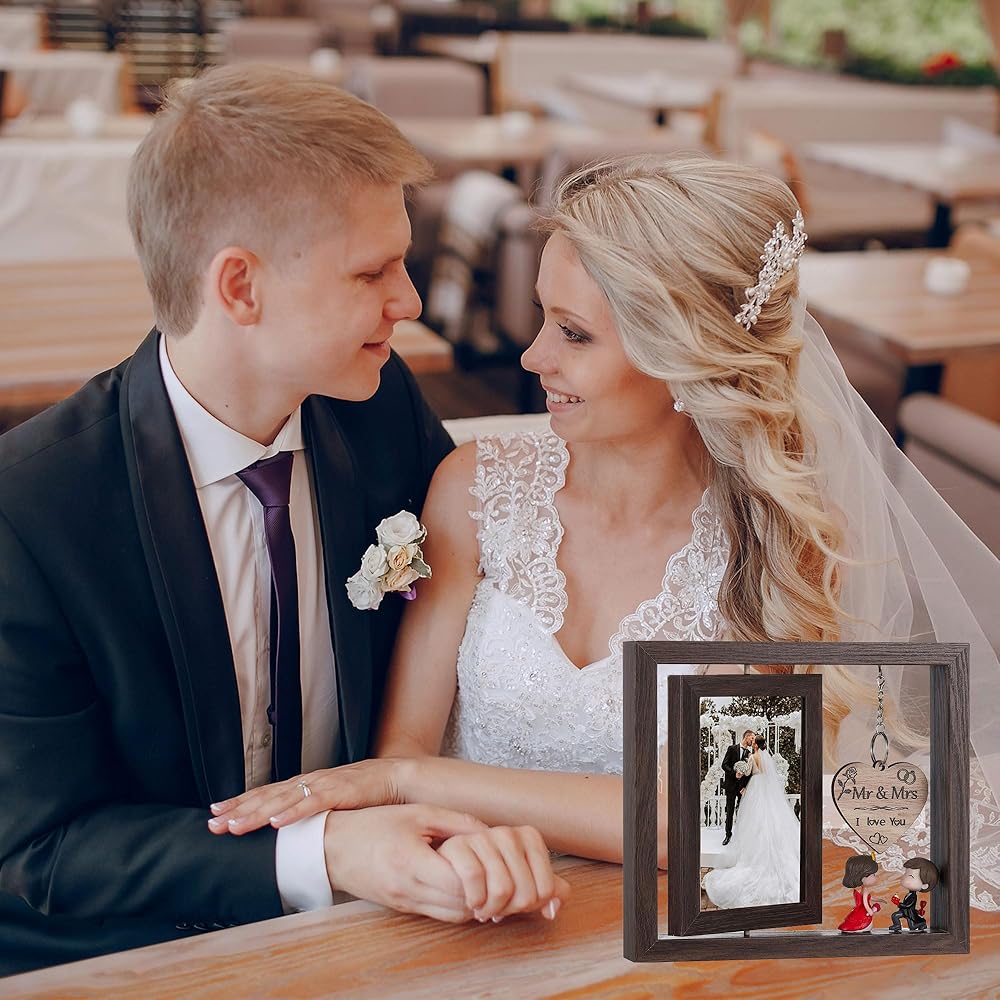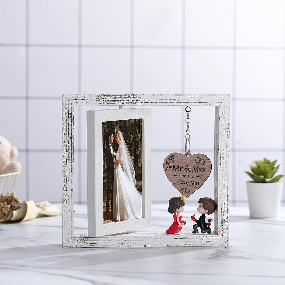 • 【للسيد والسيدة الجديدة! 】إطار صورة الزفاف هذا مثالي كهدية زفاف للعروسين للتعبير عن أفضل أمنياتك وإرسال بركاتك في حفل الزفاف. ضع إطار الصورة على سطح الطاولة على أسطح الطاولة أو السرير أو المكتب أو الرف. عندما تعود إلى المنزل وترى الصورة الحميمة لكما، تندفع حلاوة الحب إلى قلبك!