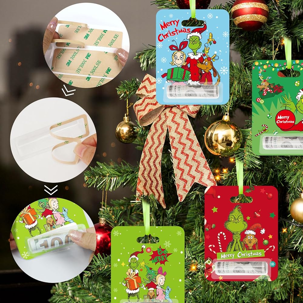 ALODNY 12 حزمة من حوامل أموال عيد الميلاد للهدايا النقدية، حاملات أموال بطاقات عيد الميلاد الحلي لتزيين شجرة عيد الميلاد المعلقة
