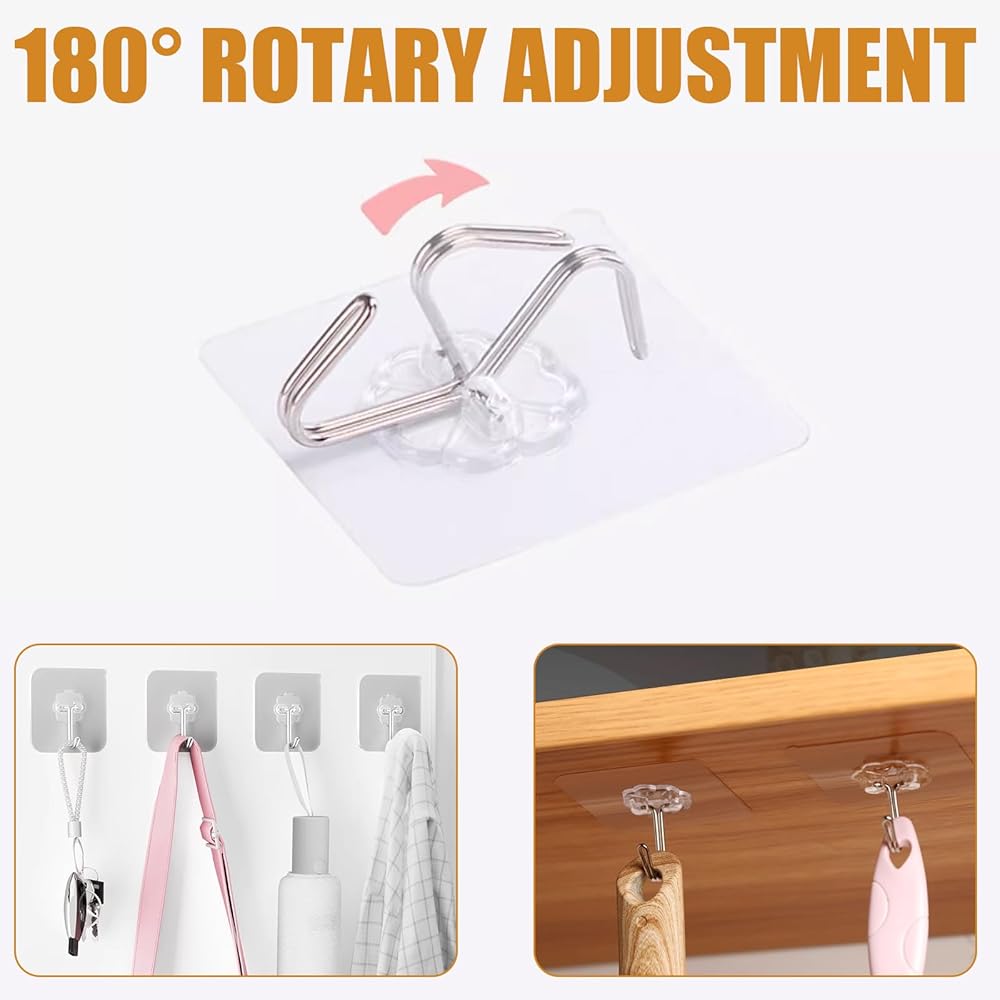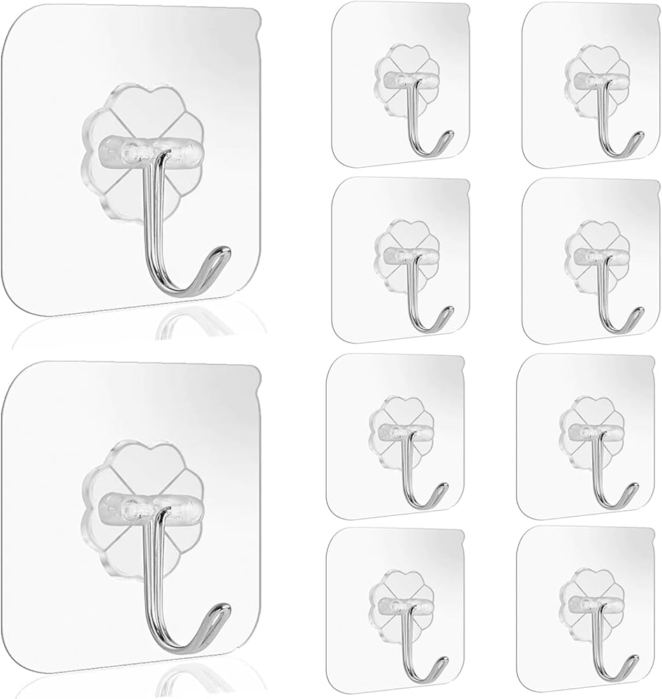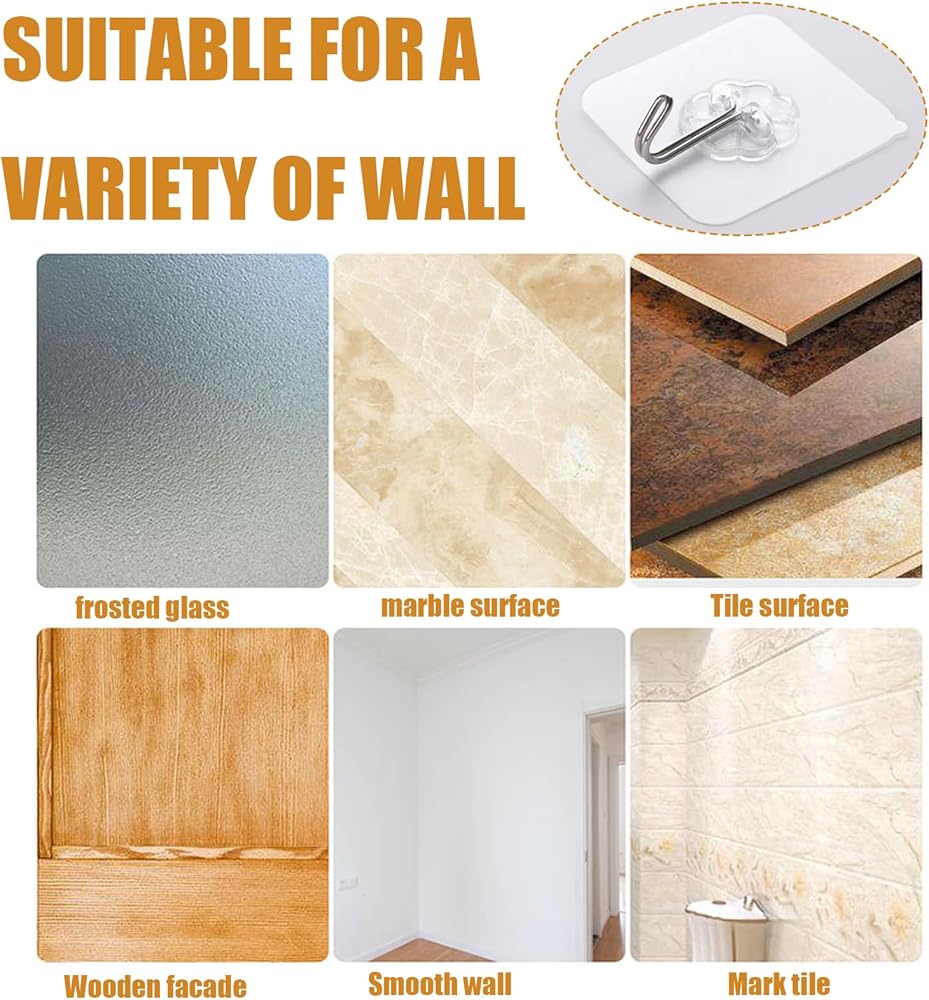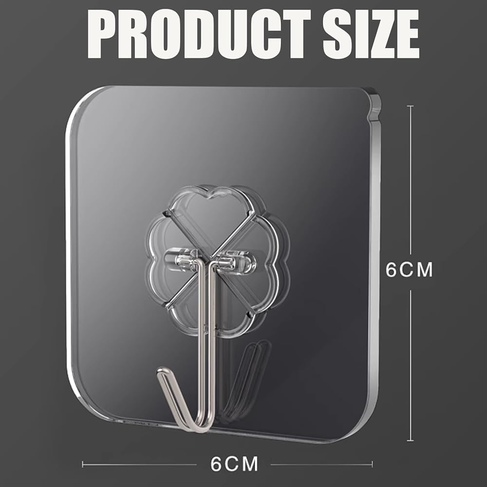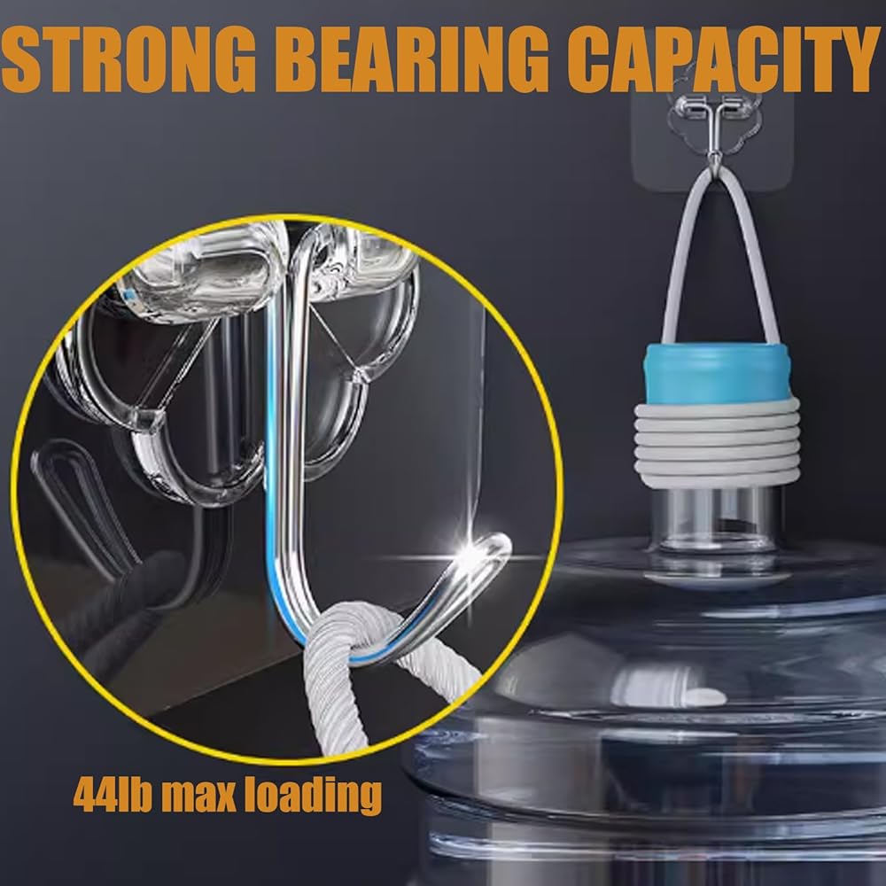 Wall Hooks for Hanging 44lb(Max), Transparent Reusable Seamless Heavy Duty Hooks, Waterproof and Oilproof, Bathroom Kitchen Self Adhesive Hooks