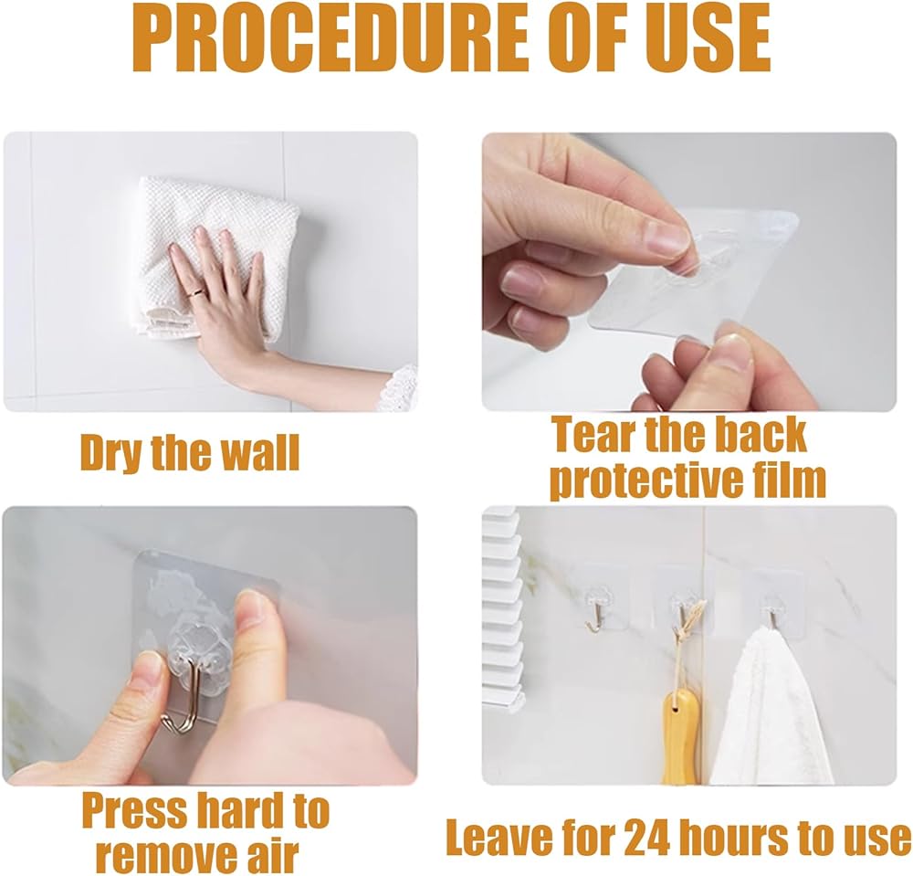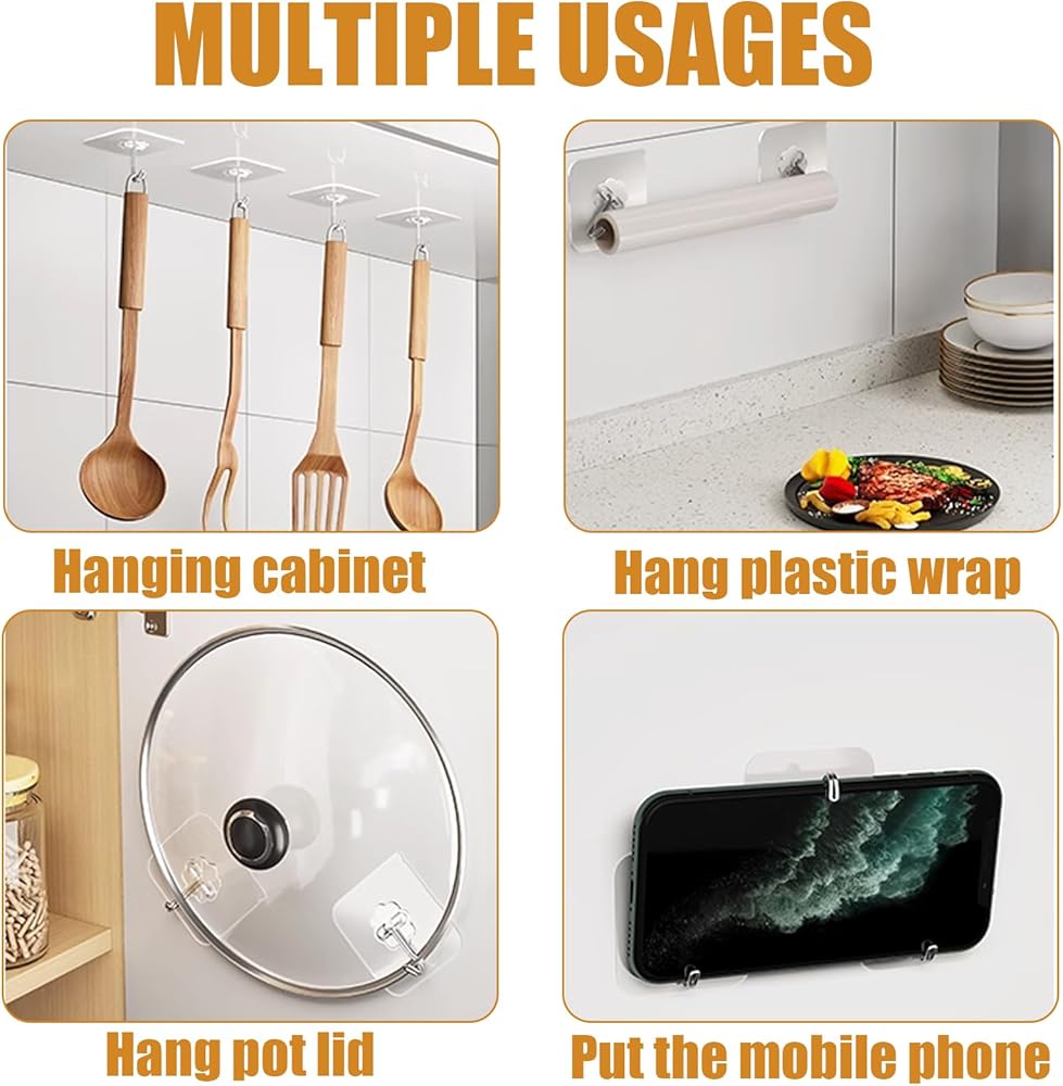 خطافات جدارية للتعليق بوزن 44 رطل (كحد أقصى)، خطافات شفافة شديدة التحمل وقابلة لإعادة الاستخدام، مقاومة للماء والزيوت، خطافات ذاتية اللصق للمطبخ والحمام