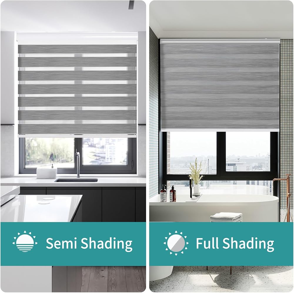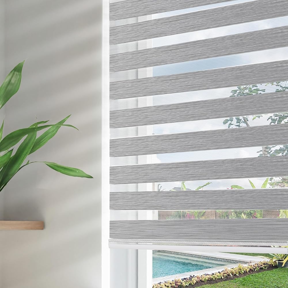 Joydeco ستائر حمار وحشي لاسلكية للنوافذ، ستائر حمار وحشي صغيرة شفافة باللون الرمادي مقاس 27 بوصة ث مرشح ضوء مزدوج الطبقة لنافذة باب زجاجية منزلقة