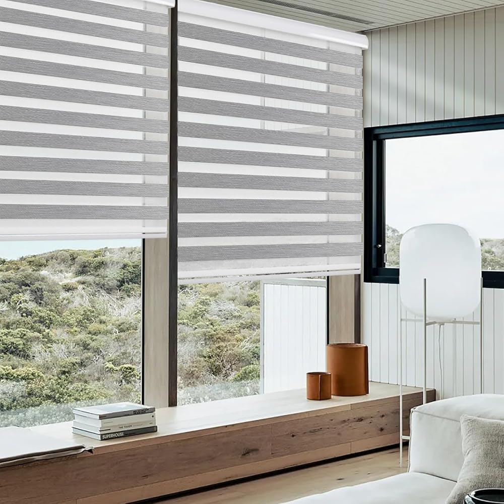 • 【مادة ترشيح الضوء】ستائر Joydeco zebra الستائر اللاسلكية الشفافة مصنوعة من البوليستر بنسبة 100% وشبكة شفافة، تُعرف أيضًا باسم الستائر الانتقالية. إنهم يخلقون نمطًا يشبه الحمار الوحشي. أثناء الرفع، لديك خيار محاذاة الأجزاء الأمامية والخلفية للخصوصية أو للسماح لبعض الضوء بالتصفية من خلالها. احصل على اثنين مقابل واحد لتصفية الضوء والتحكم في الخصوصية في معالجة النوافذ المزدوجة الوظيفة هذه بمظهر الستارة الأفقية وسهولة تشغيل الستارة الدوارة.