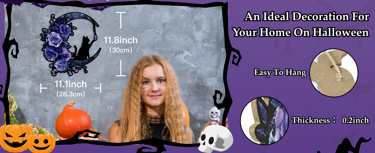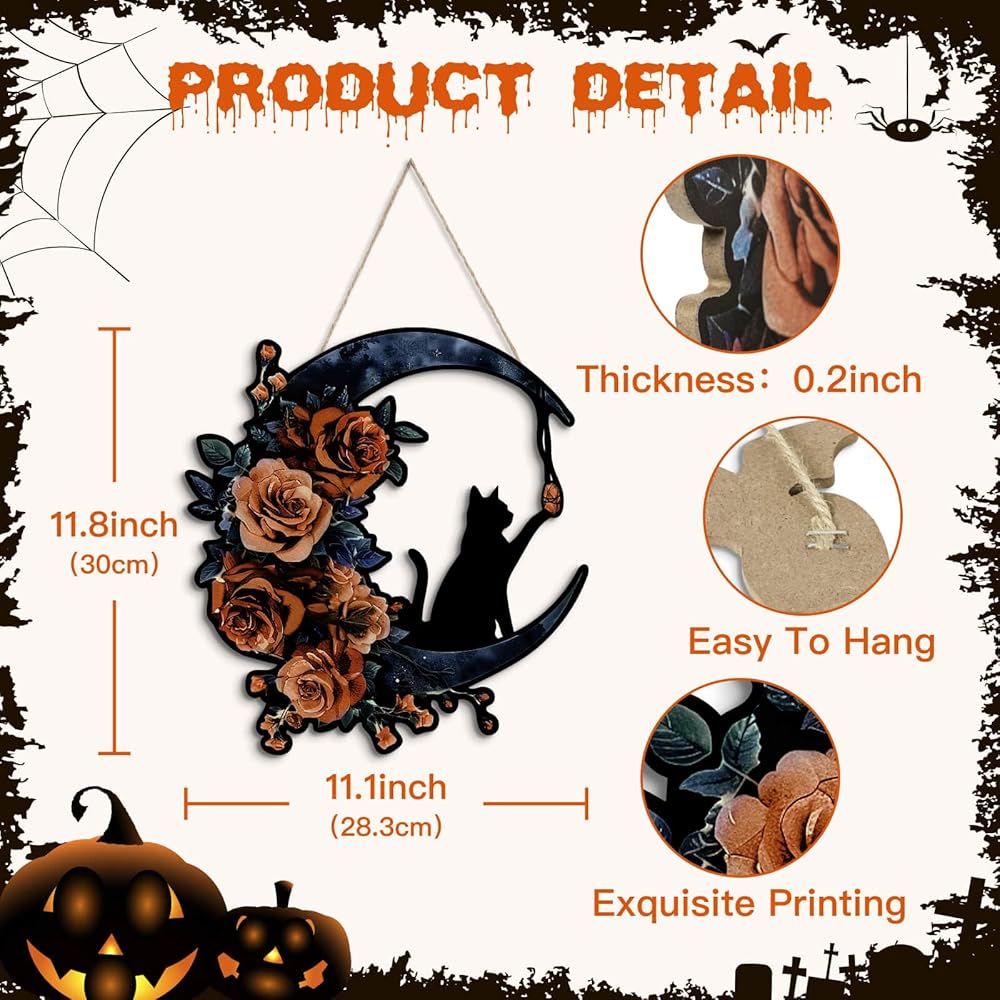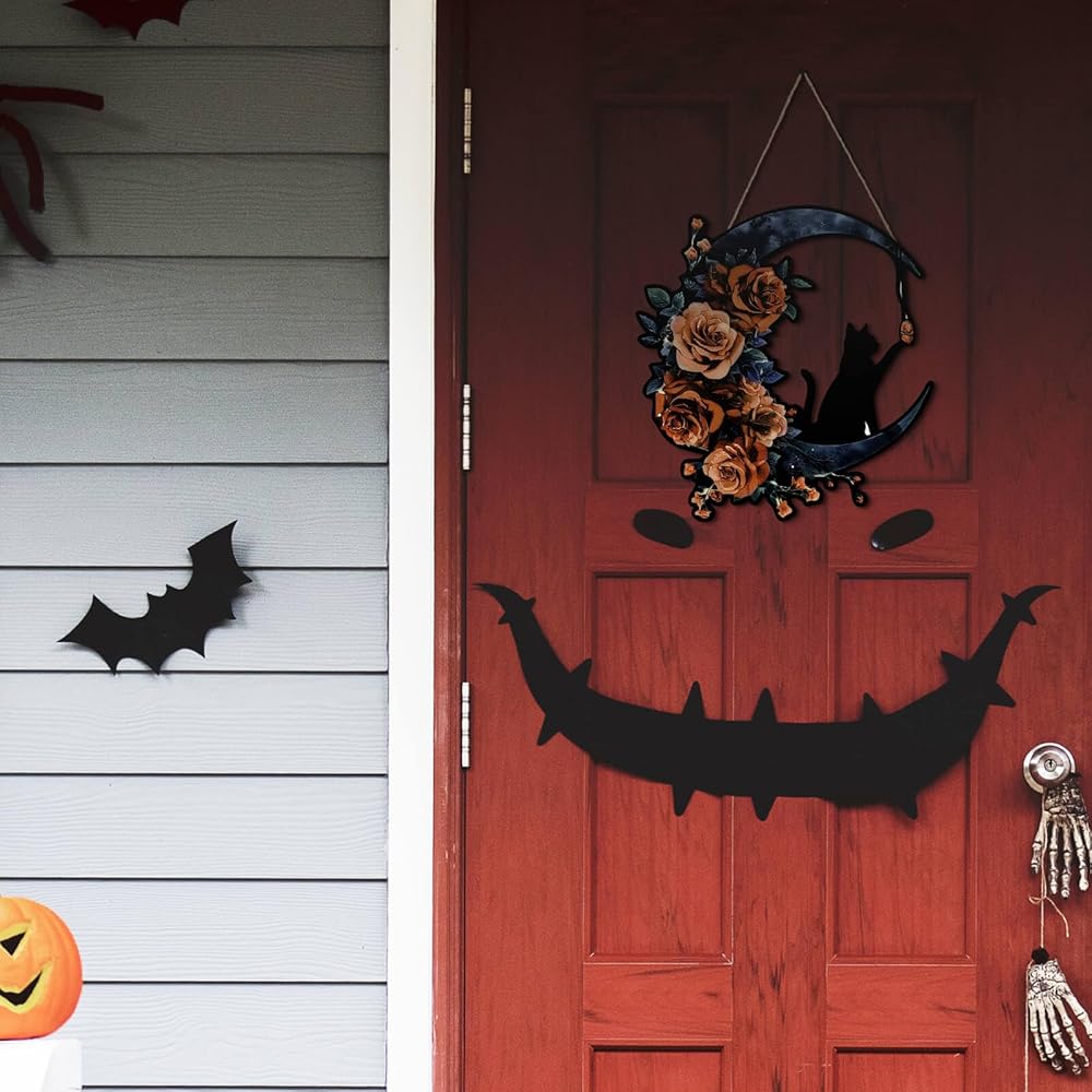 ديكور الهالوين متعدد الاستخدامات: استخدم إكليل القطة والقمر الأسود القوطي هذا ليس فقط على باب منزلك الأمامي ولكن أيضًا كديكور جداري مخيف لتعزيز الأجواء المخيفة في جميع أنحاء منزلك.