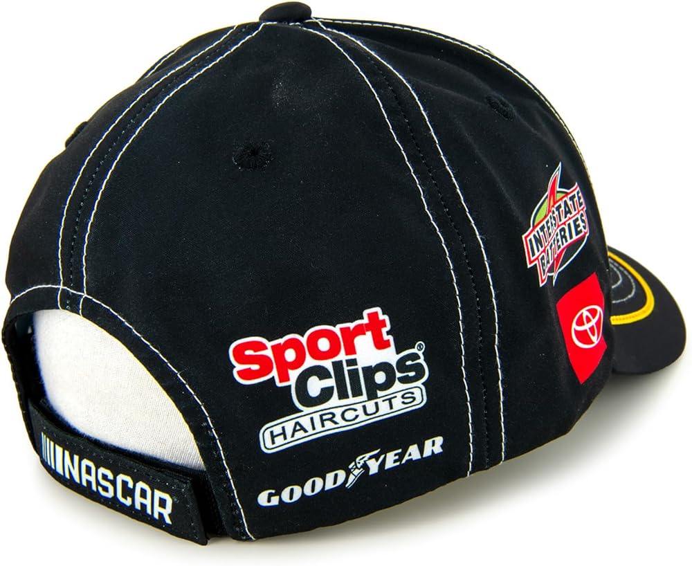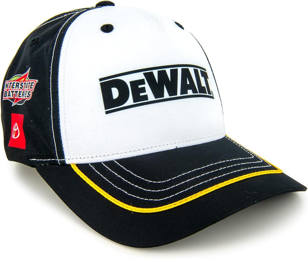 This 2024 Christopher Bell hat features the DWlt logo on the crown, as well as his secondary sponsors, team logo, manufacturer, and NASCAR logo on the sides and back