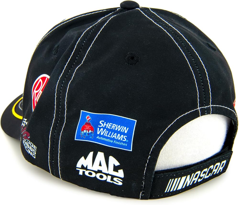 This 2024 Christopher Bell hat features the DWlt logo on the crown, as well as his secondary sponsors, team logo, manufacturer, and NASCAR logo on the sides and back. The hook loop closure adjusts to provide a comfortable fit for most adults. Officially licensed - 100% Polyester Shell.