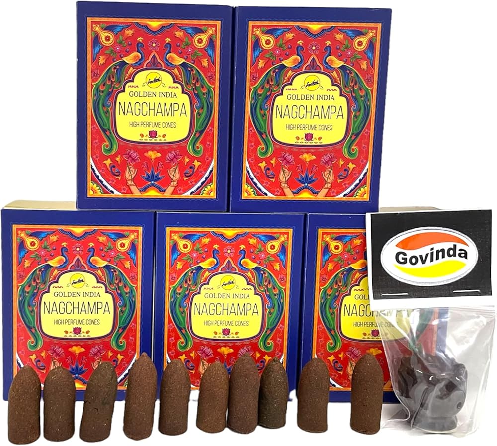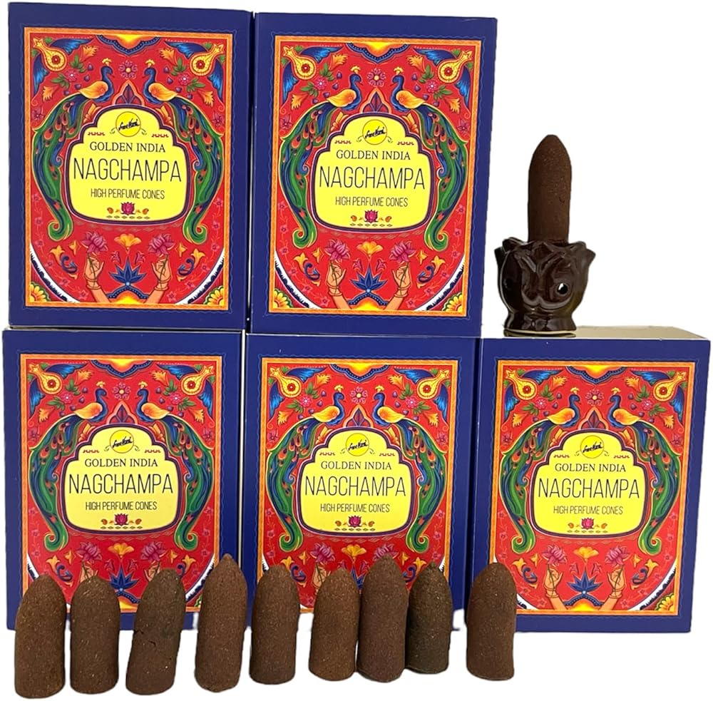 Nag Champa Highly Scented Sreevani Backflow Incense Cones For Waterfall Aromatic Smoke Fountain Haze Falls And Lotus Burner Bundle - 50 Cones in very attractive packaging.