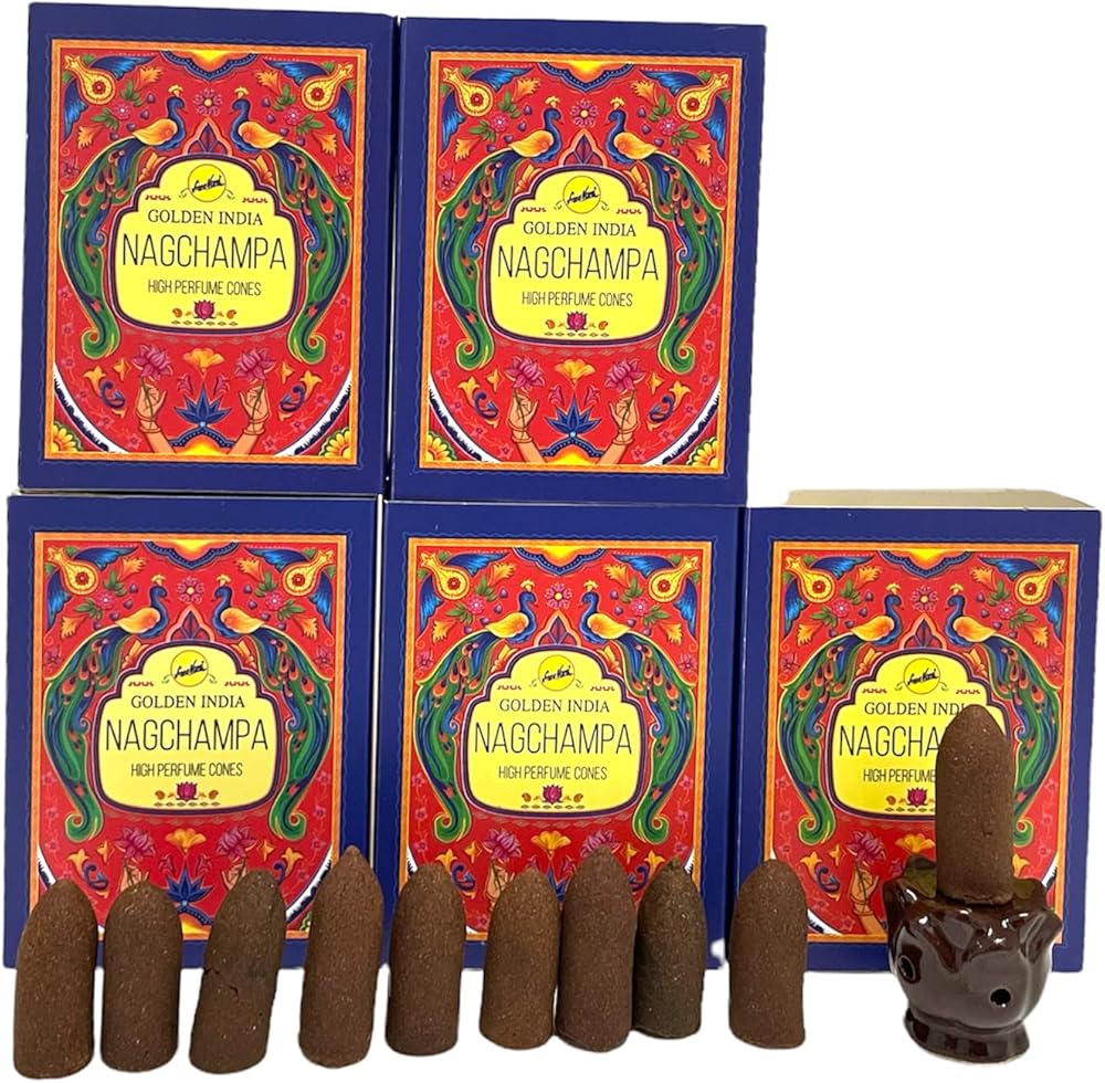 Nag Champa Highly Scented Sreevani Backflow Incense Cones For Waterfall Aromatic Smoke Fountain Haze Falls And Lotus Burner Bundle