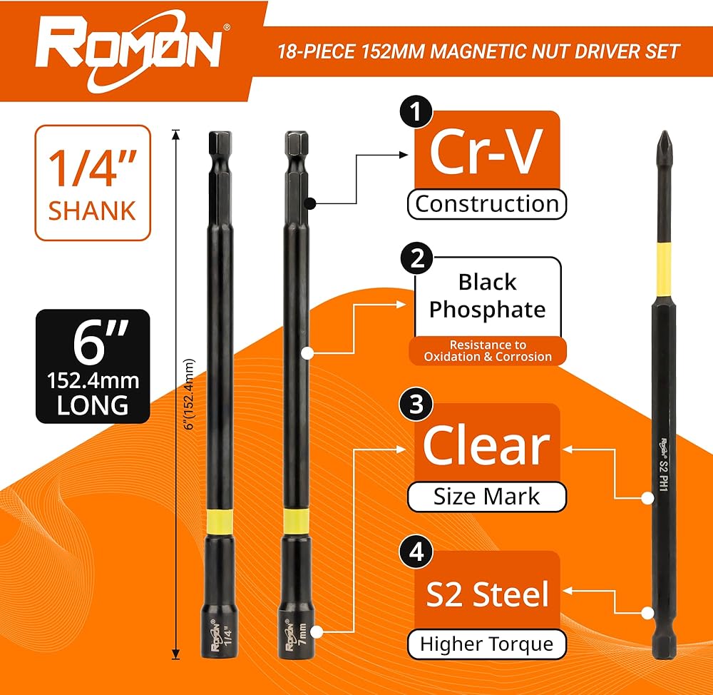 [عبوة قيمة]: العبوة تتضمن 7 قطع مفكات SAE (1/4 بوصة، 5/16 بوصة، 11/32 بوصة، 3/8 بوصة، 7/16 بوصة، 1/2 بوصة، 9/ 16 بوصة)؛ 7 قطع مفكات مترية (6 مم، 8 مم، 10 مم، 11 مم، 12 مم، 13 مم، 14 مم)؛ 3 قطع محول مقبس الصدمات (1/4 بوصة، 3/8 بوصة، 1/2 بوصة)، قطعة واحدة من حامل اللقم المغناطيسي (1/ 4 بوصات) و3 قطع تمديد سريعة التحرير (60 مم، 100 مم، 150 مم)؛ 20 قطعة مفك البراغي. تأتي مجموعة مفك الصمولة المغناطيسية الخاصة بنا مع 41 أداة عملية لتلبية احتياجات الصيانة اليومية الخاصة بك