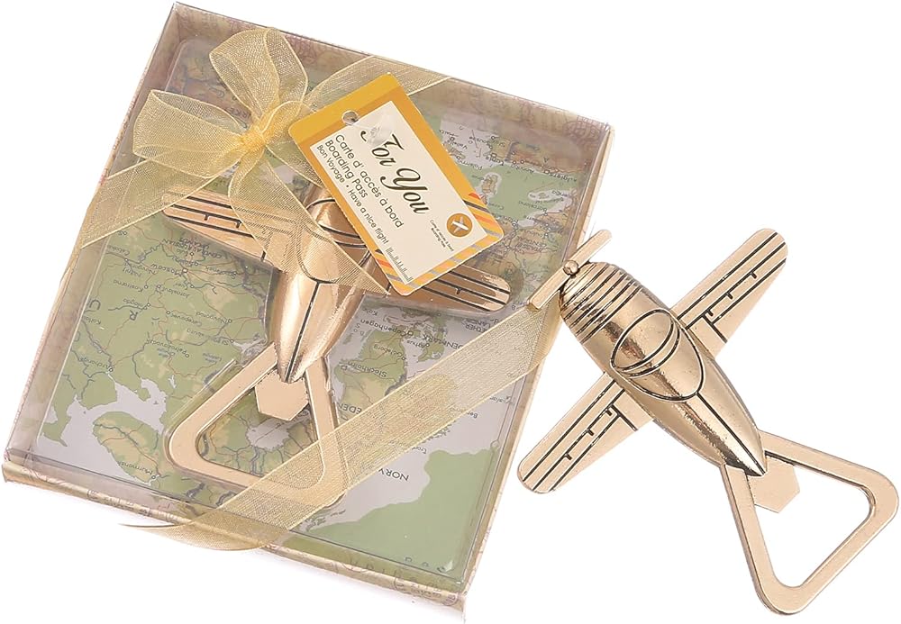 【اختيار الهدية】فتاحة الزجاجات على شكل طائرة ذهبية هي هدية مثالية للحفلات، أو تذكار، أو هدية شكر في حفلات الزفاف، وحفلات العزوبية، وحفلات أعياد الميلاد، وحفلات استقبال المولود الجديد، وحفلات العروس، وما إلى ذلك.