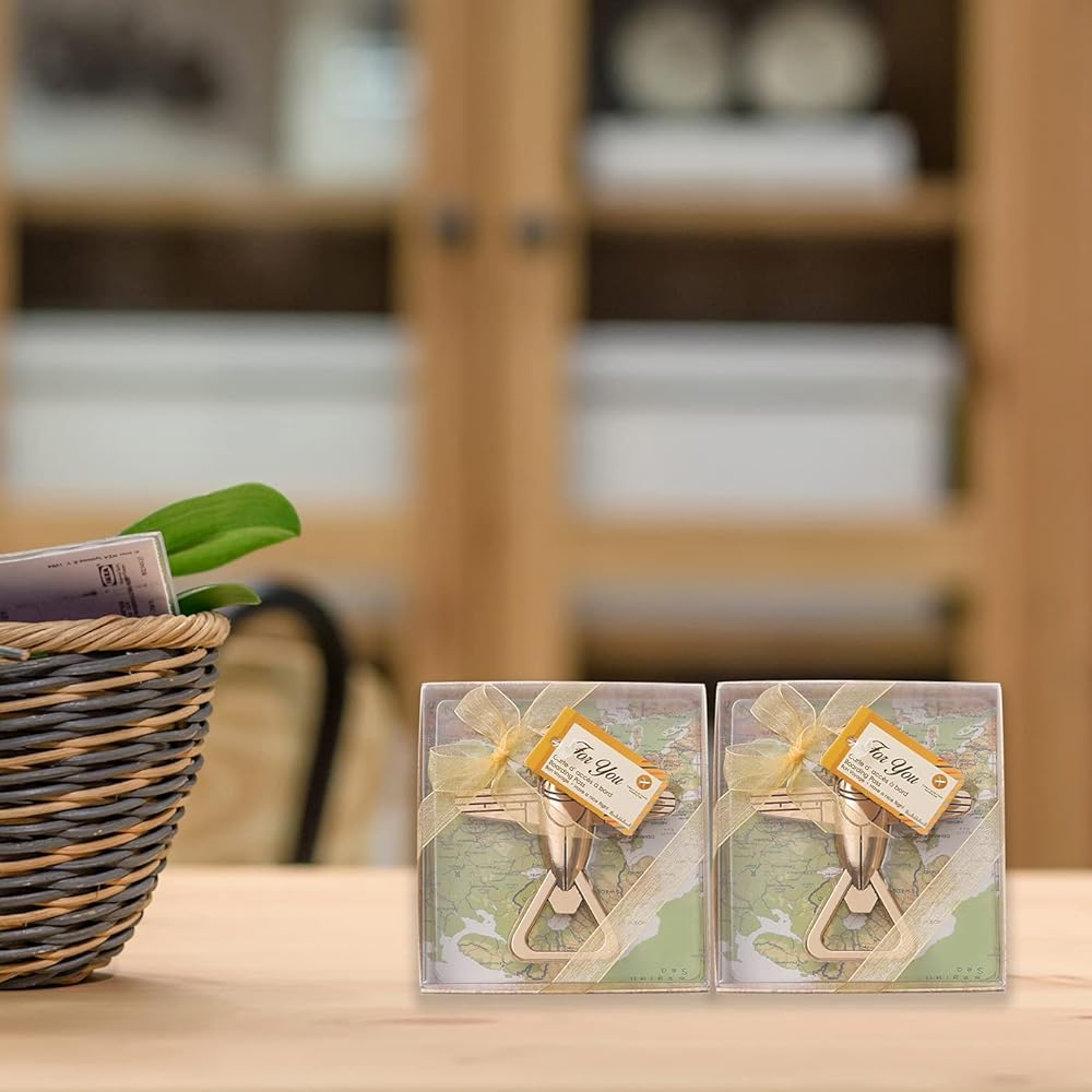 24 قطعة من فتاحة زجاجات البيرة على شكل طائرة للضيوف، دع المغامرة تبدأ فتاحات الزجاجات من أجل السفر بموضوع الزفاف، هدايا استحمام الطفل، هدايا حفلات الزفاف
