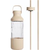 زجاجة مياه زجاجية من BEAST Health®، سعة 25 أونصة، زجاج بوروسيليكات، مانعة للتسرب، نظام مصاصة قابل لإعادة الاستخدام، غطاء حمل محمول، خالية من مادة BPA، آمنة للاستخدام في غسالة الأطباق (أسود كربوني)