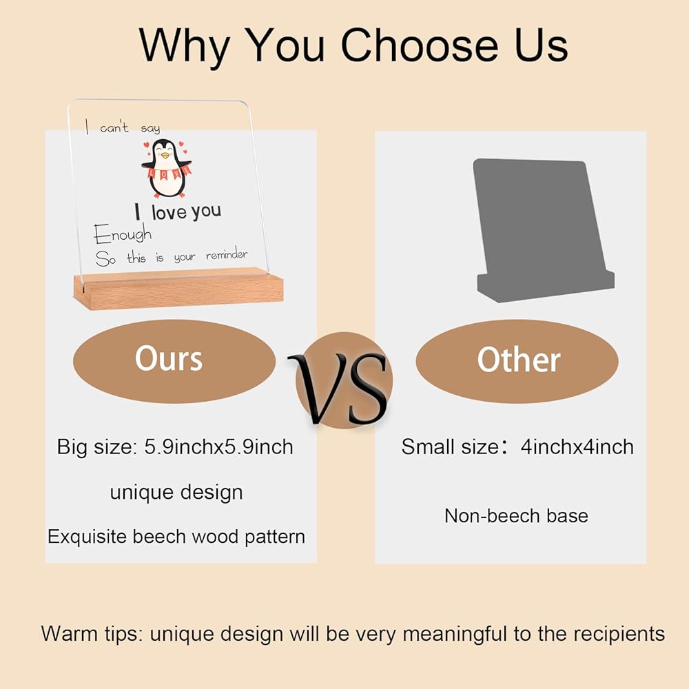 جودة فائقة: لوحة التذكير الخاصة بنا مصنوعة من مادة أكريليك جيدة، وهي جميلة ومتينة وليس من السهل أن تبهت. الاستاند مصنوع من خشب الزان الرائع. ستجد هذه المجموعة زخرفة رائعة للمناسبات المختلفة.