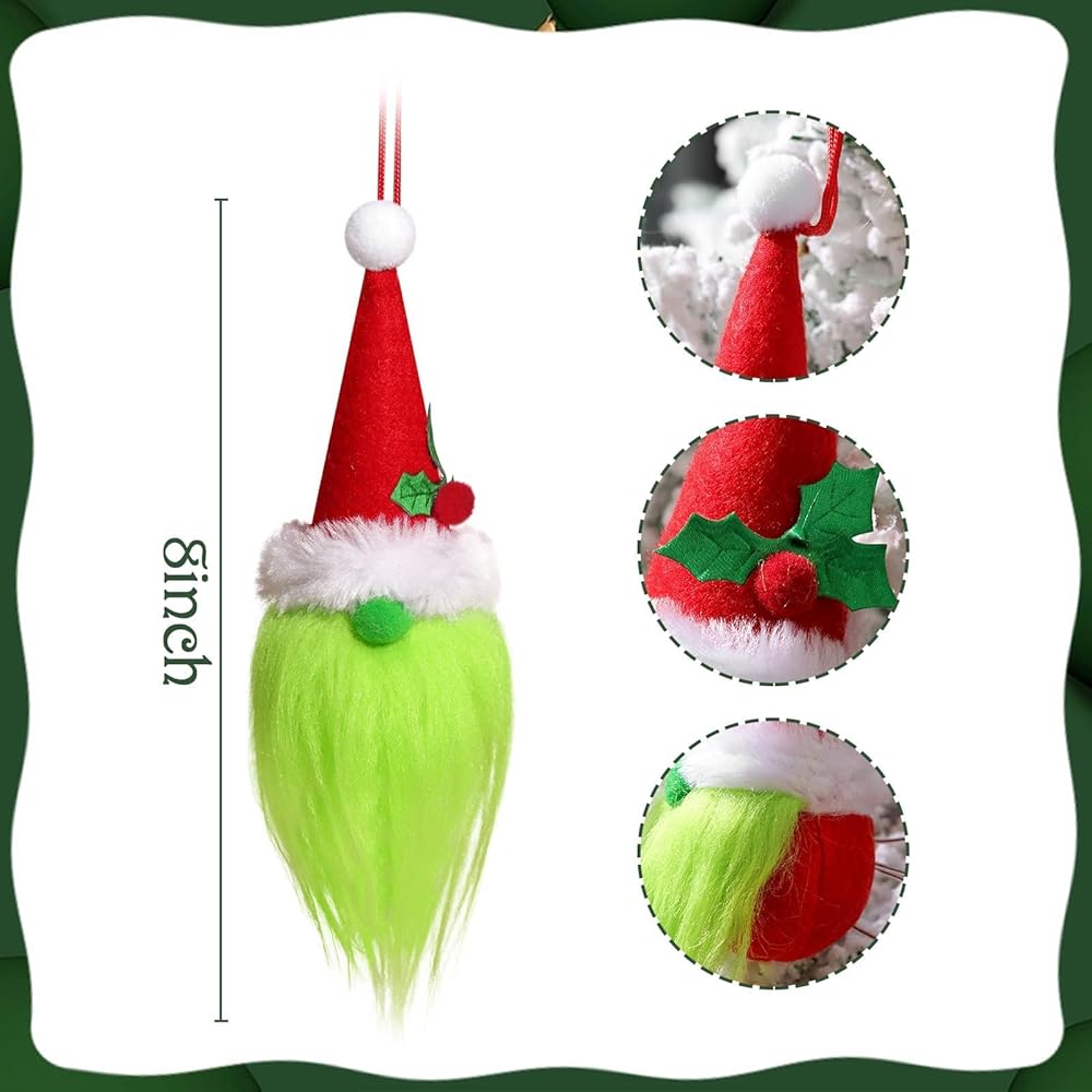 زينة عيد الميلاد في الأماكن المغلقة: 8 قطع من زخارف شجرة قزم قزم قزم حمراء وخضراء، زينة معلقة لطيفة مصنوعة يدويًا من Grinchmas Tomte لعيد الميلاد لموقد إكليل الشجرة، ديكور مكتب المدرسة المنزلية للأطفال