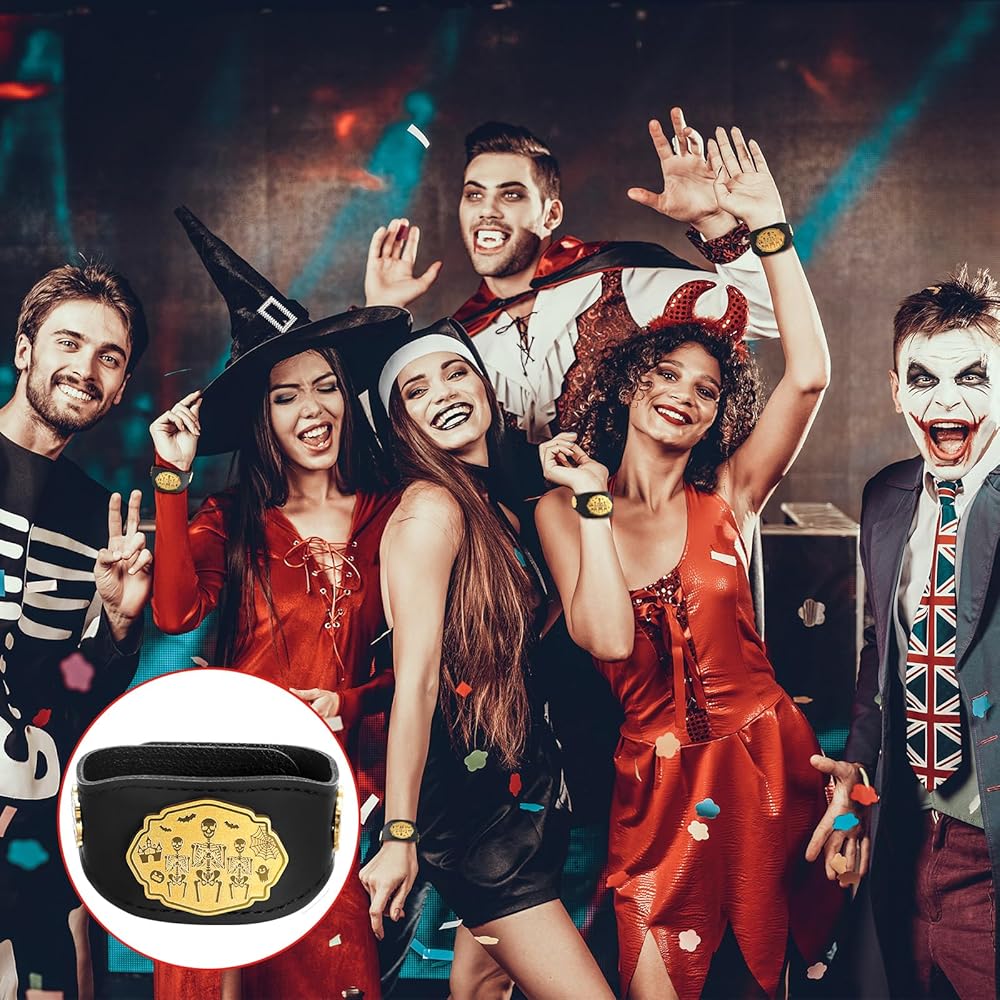 These Halloween wrist band for awards are designed with skull shape and gold color, they are so exquisite that you can give them to your family members, colleague, partners or some others around you as ideal gifts when the Halloween festival is coming.