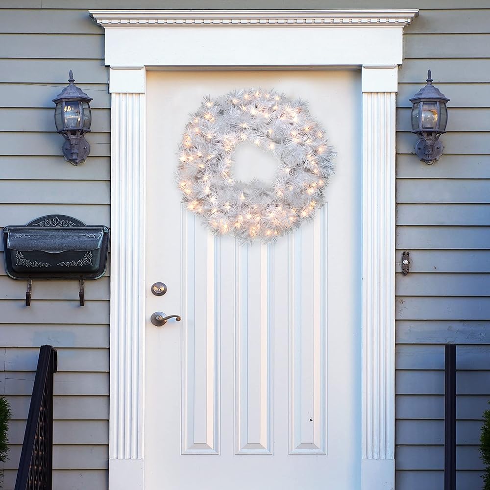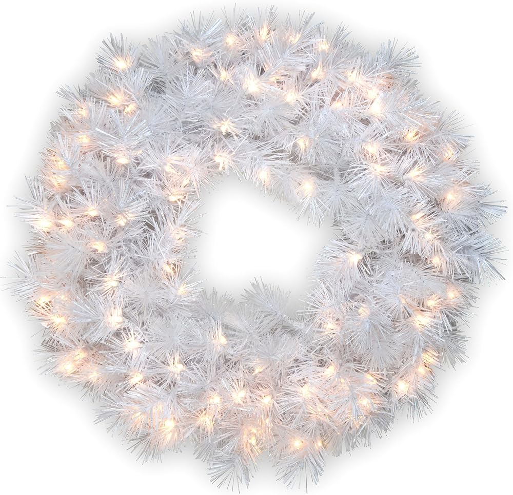 Transform your home for the winter holidays with National Tree Company's Pre-Lit Artificial Christmas Wreath Decoration. Designed with a Wispy Willow branch base, this hanging wreath is 30 inches wide. Hundreds of crush-resistant polyethylene tips form full bodied branches to create a hanging wreath with remarkable realism. This fantastically festive wreath decoration is strung with white LED lights prior to packaging for a more convenient setup. The lights operate individually, so if the bulb lens has not been cracked or broken, the light set will continue to illuminate except for any individual bulbs that are not working. To power the lights, simply plug into a wall outlet and let the pre strung lights illuminate your home with the warmth and cheer of the holiday season. Hang this decorative wreath on any door, window or mantle to bring a Christmas ambience into any room or covered porch. Constructed with sturdy, high quality materials and hypo-allergenic, fire-resistant needles, this wreath is built to bring holiday cheer for years to come. This hanging decoration is suitable for both indoor and covered outdoor use. At National Tree Company, we strive to create high quality Christmas decorations to help you transform your home so you can keep making every holiday moment magical.