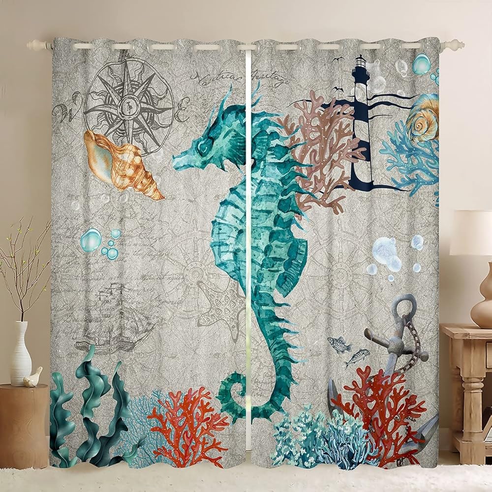 jejeloiu ستائر المحيط لغرفة النوم وغرفة المعيشة 2 لوحات، 38 × 45 بوصة للأطفال الحياة البحرية ستائر التعتيم البحرية مخلوقات البحر البحرية سواد الستائر نافذة العلاجات