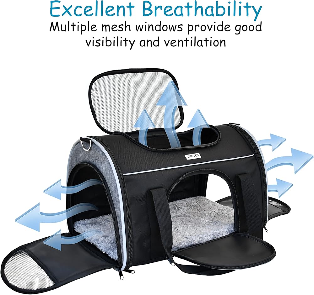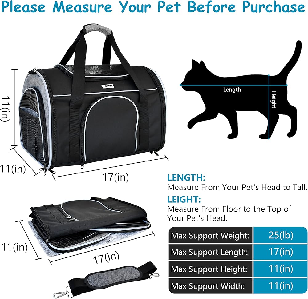 【أبعاد حامل الحيوانات الأليفة】45 سم طول × 27.94 سم عرض × 27.94 سم ارتفاع. يناسب حامل الحيوانات الأليفة الصغيرة والمتوسطة الحيوانات الأليفة في حدود 40.64 سم × 25.4 سم × 25.4 سم و10 كجم. يرجى الاتصال بالطائرة لضمان أبعاد حامل الحيوانات الأليفة قبل الطيران مع حيوانك الأليف.