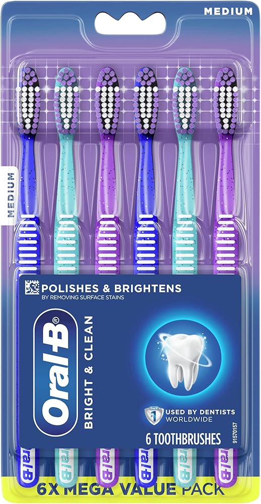فرشاة أسنان أورال-بي برايت آند كلين - متوسطة، عدد 6