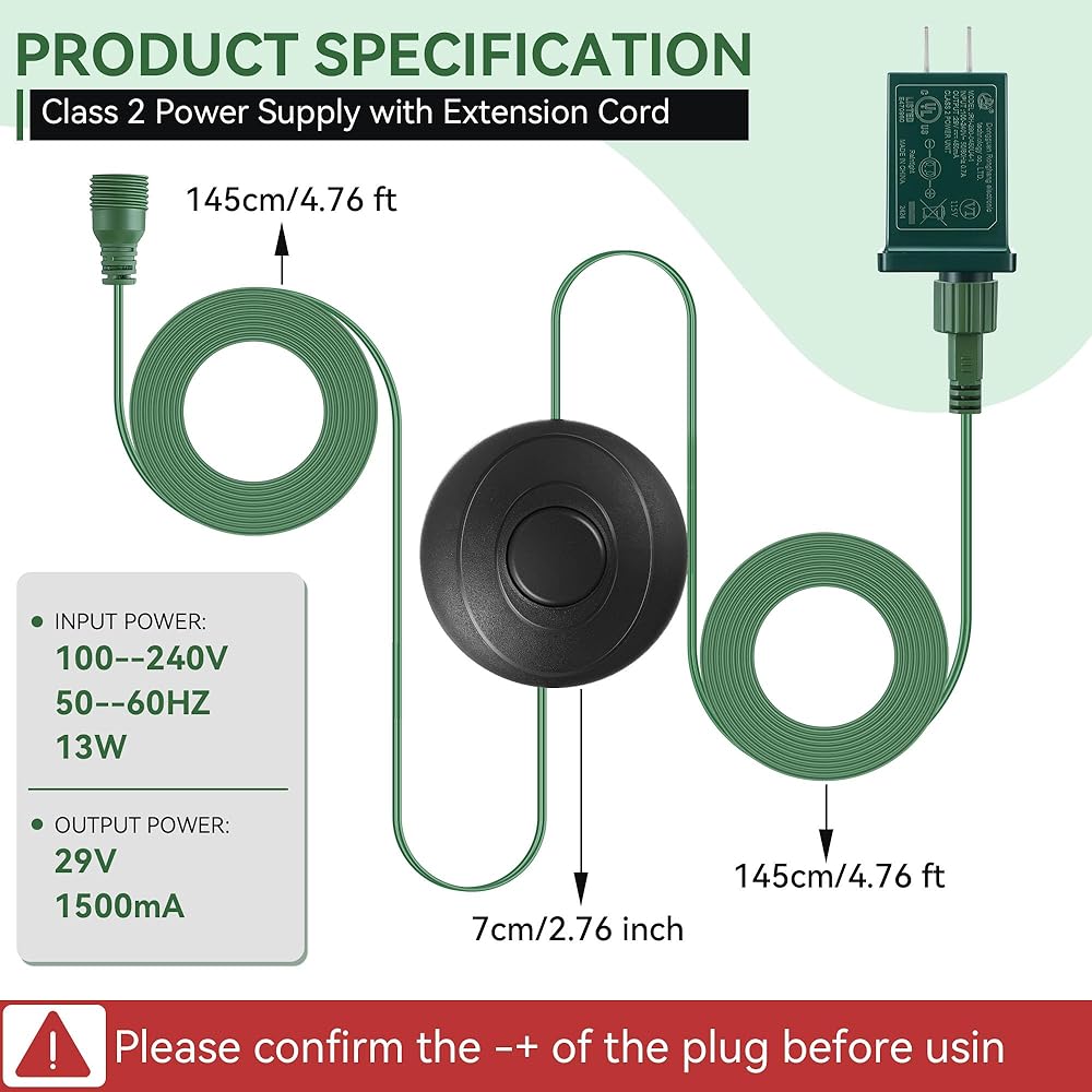 Class 2 LED Power Cord Extension Plug for Christmas Tree Light, Practical and Reliable for Lighting Up Christmas