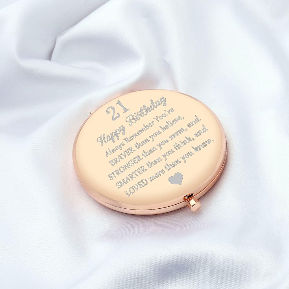 ❥هدايا عيد ميلاد سعيد الحادي والعشرين❥أفكار مرآة عيد الميلاد الحادي والعشرين محفورة بكلمات دافئة تذكر دائمًا أنك أكثر شجاعة مما تعتقد، وأقوى مما تبدو عليه، وأذكى مما تعتقد، وأحببت أكثر مما تعلم. دع هذه الكلمات تجلب للمتلقي الحب والقوة والأمل.