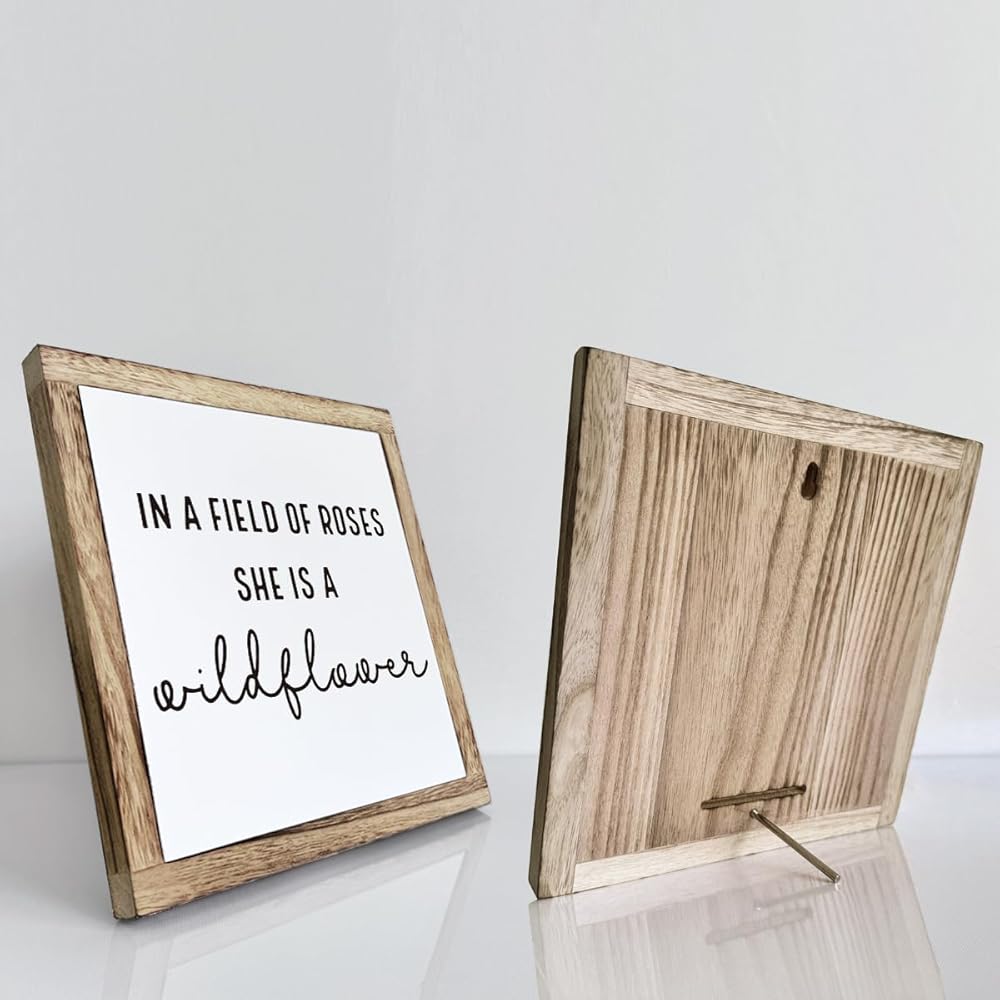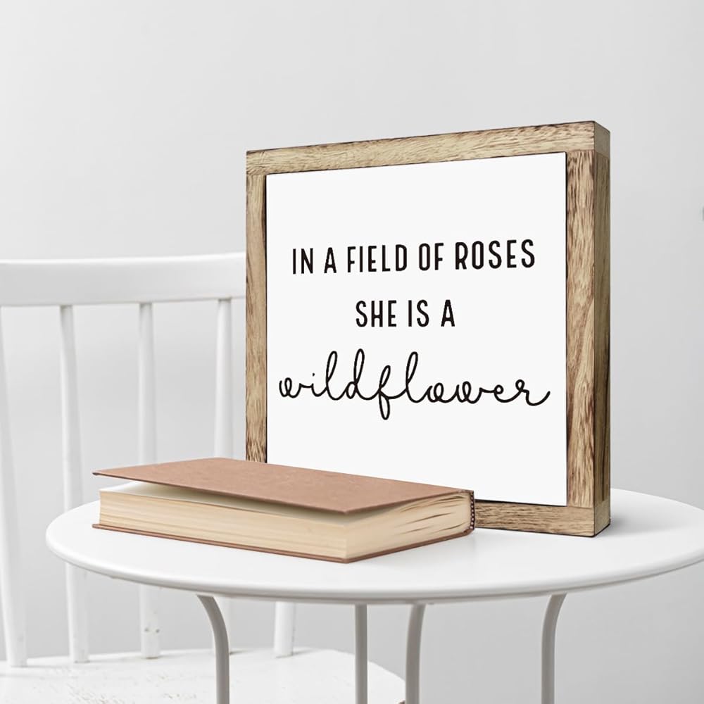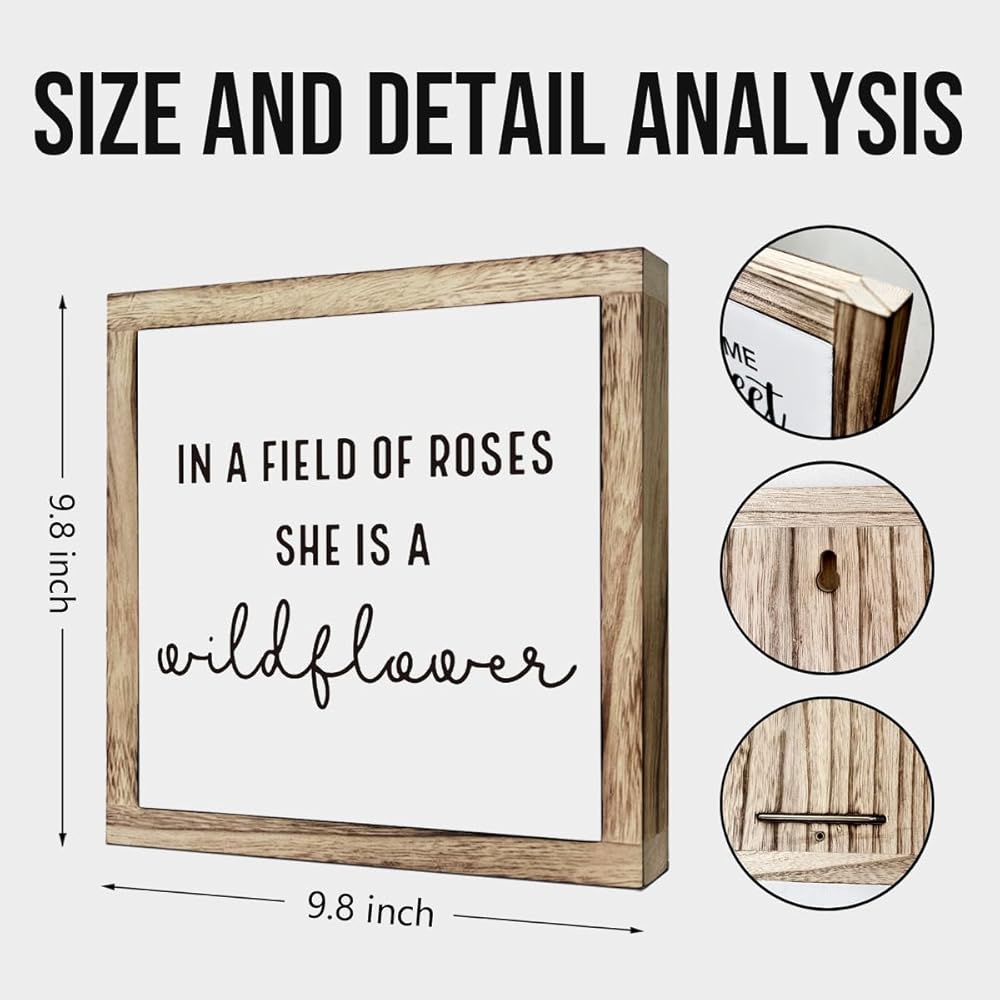 لافتة خشبية لبيت المزرعة، ديكور غرفة الفتيات، في حقل من الورود، هي علامة زهرة برية، ديكور غرفة نوم الابنة، ديكور حضانة البنات، علامات صندوق اللوحات الخشبية، لافتة مكتب خشبية مزخرفة، 9.8 * 9.8 بوصة