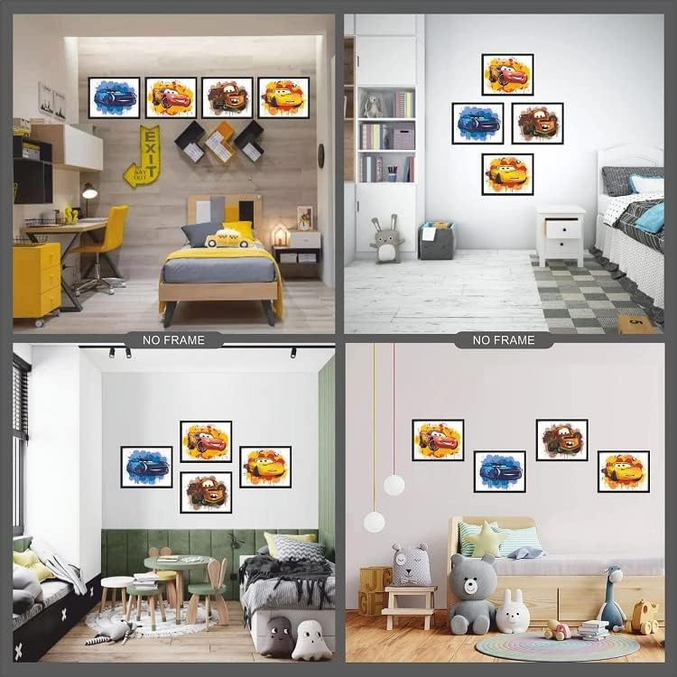 🌎 𝑪𝑯𝑰𝑪 𝑫𝑬𝑺𝑰𝑮𝑵 𝑹𝑬𝑨𝑫𝒀 𝑻𝑶 𝑭𝑹𝑨𝑴𝑬: يرجى ملاحظة أن مجموعة الطباعة هذه المكونة من 4 قطع لا تأتي مع إطارات. برجاء تجهيز الإطارات المناسبة. جميع الأطفال يحبون فيلم شخصية السيارات. إنها مناسبة لغرفة المعيشة أو غرفة نوم الأطفال أو الحضانة أو غرفة اللعب أو النوم أو الفصل الدراسي أو حتى هدية الانتقال إلى منزل جديد. اختيار مثالي لتزيين الجدران وديكورات المنزل يمكن أن يكون مريحًا أيضًا.