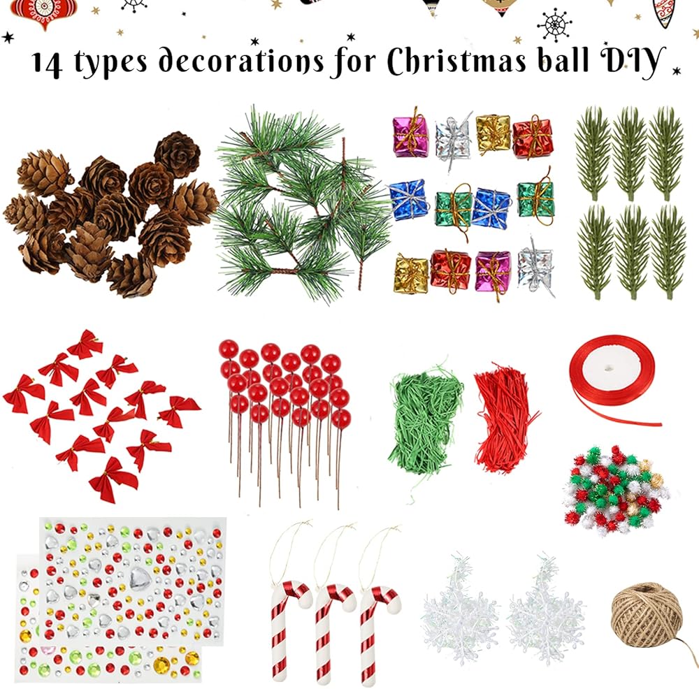 صممها بنفسك: يمكن فصل كل كرة بسهولة إلى جزأين، ثم ضع أي ملحقات تريدها، وأخيرًا قم بربط حبل أو شريط لتعليق الكرات على شجرة عيد الميلاد. لقد تم ذلك! فقط أطلق العنان لخيالك بحرية، واستمتع بالمرح وقم بتصميم حرف الديكور المعلقة الفريدة الخاصة بك
