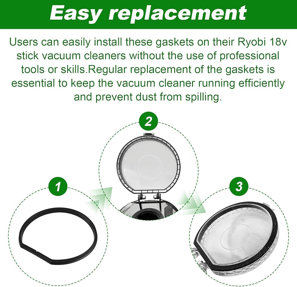 【سهولة الاستبدال】يمكن للمستخدمين تركيب هذه الحشيات بسهولة على المكنسة الكهربائية Ryobi 18 فولت بدون استخدام أدوات أو مهارات احترافية. يعد الاستبدال المنتظم للحشيات ضروريًا للحفاظ على تشغيل المكنسة الكهربائية بكفاءة ومنع انسكاب الغبار.
