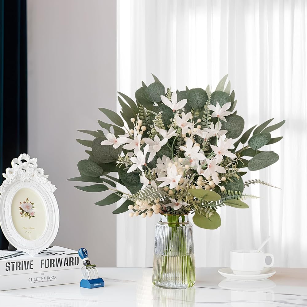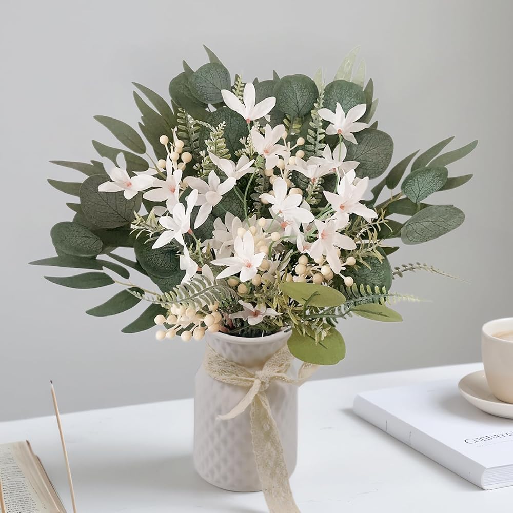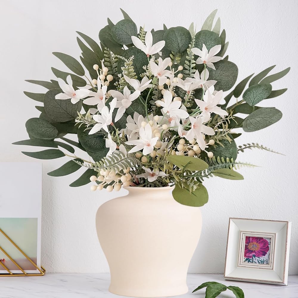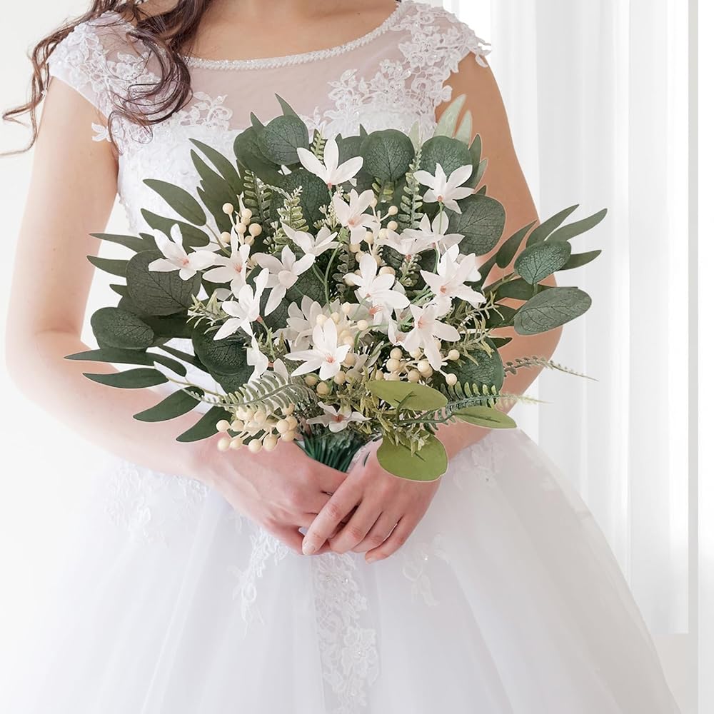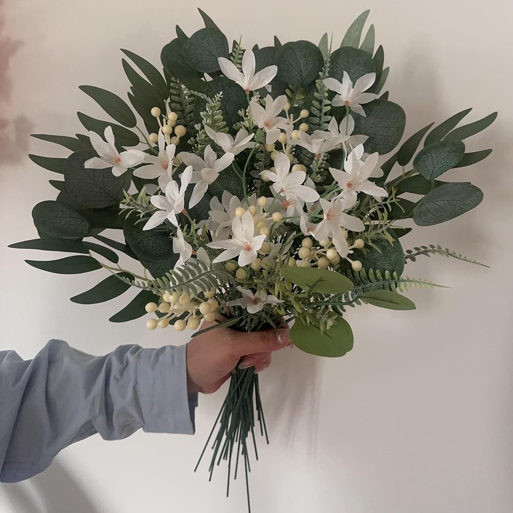 مجموعة صناديق سيقان خضراء اصطناعية مكونة من 65 قطعة، مع 7 أنواع من النباتات الصناعية والزهور والفروع الخضراء من الأوكالبتوس لباقات الزفاف المزخرفة وترتيب زهور الزفاف وتزيين قطع مركزية للطاولات