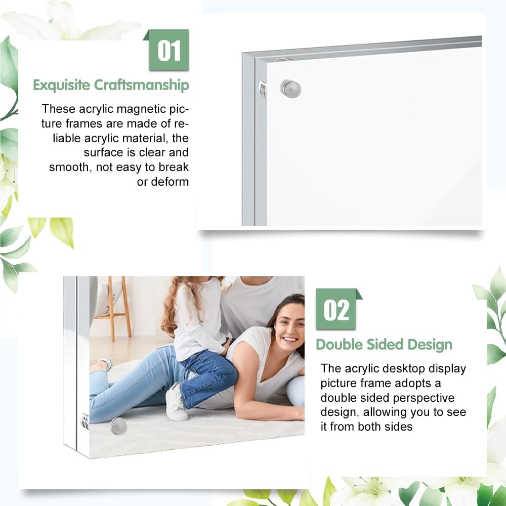 [Magnetic connection] This 4×6 clear acrylic photo frame has magnets added to the four corners and uses a magnetic method to connect the front and rear panels. This allows you to install it more easily and use it repeatedly, eliminating the inconvenience of traditional screw connections and sticky paper connections