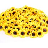 50 قطعة من رؤوس عباد الشمس الصناعية الصغيرة، رؤوس زهرة الشمس DIY ديكور فني من الحرير الأصفر لتزيين الزهور الصناعية للمنزل وحفلات الزفاف والمطبخ والكب كيك (1.8 بوصة)