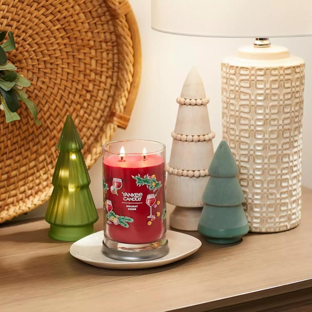 Toast the holiday season with a warm, sweet fragrance blend of cardamom, blackberry wine, and vanilla sugar you'll love to share with this Yankee Candle Holiday Cheer Signature Large Tumbler Candle.